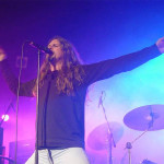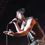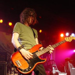 Riser und feuert die Meute rechts der Bühne zum Abgehen an, Neu-Bassist Jim