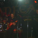 in XXXXL Größe über den Jungs rotierte. Licht und Sound waren toll - so lange bis bei Sänger Tobias das Mikro anfing zu zicken. Immer wieder fiel der Ton aus - wie sich später herausstellte ein technischer Defekt am Kabel. Somit waren leider drei Songs für den geplanten DVD Mitschnitt im Arsch. Trotzdem kämpften Lanfear weiter - Markus Ullrich setze sich an seiner Klampfe genial in Szene und fiedelte an seinen Saiten das es einem schwindelig werden konnte. Auch Jürgen an den Drums gab wieder alles, so das die technischen Mängel schnell vergessen waren. Tolle Gesangsleistung von Tobias Althammer z.B. bei "Regression" oder "The Spell". Für mich die Highlights des Abends ganz klar "The Fortune Lies Within" und "Zero Poems". Zwei neue Songs wurden auch vorgestellt, " In Silence" und "The Unrestrained". Hätten beide übrigens auch problemlos auf "The Art Effect" drauf sein können!