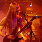 Nach einer ordentlich kurzen Umbaupause sollte sich alles schlagartig ändern. Selten gab es solch euphorische Reaktionen auf eine Vorgruppe in der Markthalle. Eins, zwei, drei , Hände in die Luft, Haare geschüttelt, Körper crowdgesurft, Menschen stagegedivt. Zeitweise war die Band kaum noch von den Fans zu unterscheiden. (Ganz anders als tags zuvor bei den Mega-Stars "In Flames", als ein nur kurz inne haltender Stagediver von den Bühne geprügelt wurde). Jedenfalls spielten ENSIFERUM einen Gig, der es wahrlich in sich hatte. Sie stellten ihre in Europa (außer Finnland) noch nicht erhältliche neue Scheibe "Iron" vor, die Leute flippten trotz Unkenntnis komplett aus. Egel, ob der Opener "Ferrum Aeternum" oder den älteren Hit "Token of Time", "Windrider" und wie sie alle heißen: Die Meute sog die Töne der Angepinselten auf, als könne es der letzte Atemzug überhaupt sein. Nach dem abschließenden "Battle Song" beendeten die Jungs einen sehr, sehr amtlichen Auftritt. Manch krittelnder Kollege meinte zwar, die Band höre sich an wie "Children of Bodom" mit Folk-Elementen … Aber was soll’s?