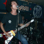 Dann enterten die drei kleinen Japaner von ELECTRIC EEL SHOCK die Bühne und zeigten schon allein von der Optik her, welche Stile ihre Musik beeinflussen: Sänger Aki mit Jimi-Hendrix-Afro und Flying "V"-Gitarre, Bassist Kazuto mit langen Haaren, Drummer Tomoharu mit strubbeliger Punk-Frisur, dazu schwarze Gitarrengurte mit Nieten. Programmatisch wurde als Intro BLACK SABBATH´s "Iron Man" eingespielt, die Band stieg in den Song ein - und dann ging so dermaßen die Post ab, dass man nicht mehr wusste, wo oben und unten war. Ich weiß nicht, wie sie es machen, aber EES gelingt es, 80er Jahre Heavy Metal mit Punkrock und Rock ´n Roll zu mischen, was ja zunächst erst mal gegensätzlich zu sein scheint, aber bei ihnen funktioniert´s! Immer wieder kann man Riffs heraushören, die an die alten IRON MAIDEN und BLACK SABBATH erinnern, die EES aber so dreckig-punkig spielen, das ein ganz eigener Sound dabei herauskommt - und der ist äußerst Energie-geladen! Und wie sie dabei abgehen! Aki und Kazuto hauen wie besessen in ihre Saiten, rennen und springen wie wild auf der Bühne rum und klettern immer wieder auf ihre Boxen, um direkt unter der niedrigen Decke des Molotow weiterzurocken. Tomoharu hat sich schon nach zwei Songs so in Rage geprügelt, dass er sich (offenbar in Ekstase) die Hose vom Leib reißt und unten ohne auf der Bühne steht. Daraufhin verschwindet er kurz hinter der Bühne und kommt - Chili-Peppers-like - mit Strumpf zurück. Zwischendurch haut er dann auch schon mal ein Becken kaputt, bzw. es gelingt ihm, ein Oberarm-großes Stück herauszuschlagen.