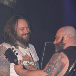 Und dann kamen CROWBAR. Wie lange waren sie weg? Vier Jahre? Egal. Mit leuchtenden Augen wird Kirk Windstein empfangen. Euphorisch jeder Song mitgefeiert, ekstatisch die Hüften geschwenkt. Mit den leuchtenden Augen hat es Herr Windstein heute selbst ein bisschen schwer, seine Augenringe laufen selbst denen von Peter Tägtgren den Rang ab, der Rest vom schütteren Haar ist gemäht, dafür darf ein grau gesprenkelter Bart ums Gesicht wuchern. Aber die Stimme sitzt, nölt, gröhlt, winselt. Herrlich. Und plötzlich ist jeder Fan. UNDERTOW sitzen gebannt am Bühnenrand, daneben kauert Jacob von HATESPERE und hängt Kirk an den Lippen. Magische Momente. Zu "Planets Collide" sang Joschi von UNDERTOW im Duett mit Kirk. Auch wenn der Kultfaktor von Sexy T und Jimmy Bower schon extrem hoch war, es scheint gut, dass Kirk jetzt so vergleichsweise junge Leute in der Band hat wie Steve Gibb und Tommy Buckley. Tommy, sonst Schlagzeuger bei SOILENT GREEN, ist ein quirliger Kerl, von dem man sich fragt, wie ausgerechnet dieser sonst-nicht-stillsitzen-Könner die doomigen Parts hinbekommt, Patrick Bruders (GOAT WHORE) spielt seinen Bass nicht, sondern zelebriert ihn, wiegt ihn in den Händen, lässt ihn tanzen. Und dort in der Mitte dieses Orkans steht Kirk, zupft seine Gitarre und singt - ein Best-Off-Programm von der "Obedience Through Suffering" bis zum aktuellen, noch nicht erschienenen Album. (laetti)