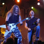Ein fettes Backdrop mit der Abbildung des aktuellen Album Covers, links und rechts am Bühnenrand jeweils drei alte Kanonengeschosse und eine dem Headliner entsprechend würdige Lightshow zierten das Bühnenbild als Schaffer, Owens & der Rest von ICED EARTH ohne ein großes Intro die Bühne betraten und mit "Declaration Day" begannen. Klasse Sound und ein, wie nicht anders zu erwarten, wahnsinniges Organ vom Ripper, schafften es die Menge von Beginn an zu begeistern. Und es lag eine Spannung in der Luft - wie wird Tim Owens das alte Zeug singen, passt es oder passt es nicht? Weiter ging es mit "Burning Times" und ja man ES PASST - und wie es passt, Ripper "Goldkehlchen" Owens brachte die tieferen Gesangsparts perfekt rüber und sobald es hoch geht, steht er Matt Barlow in rein gar nichts nach. Im Gegenteil, er weißt sogar deutliche Vorteile auf und ist für ICED EARTH mehr als ein adäquater Ersatz. "Vengeance Is Mine", "Violated" und (Achtung !) "Melancholy" versetzten mich in eine Art Trancezustand. Leck mich am Arsch war das geil ! Die folgende Ansage des Rippchens bescherte meinem Gesicht doch tatsächlich eine starke Verwunderungsmiene "The next Song is called - Something Wicked This Way Comes" und es ertönten die ersten Zupfer von "Prophecy" - jawoll man, die TRILOGY !!! - komplett, wie geil !!! Selbst der schüchternste Headbanger konnte sich wohl nicht mehr zurück halten und schüttelte sein Haupthaar in den folgenden knapp 15 Minuten.
