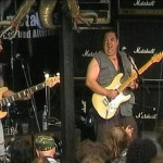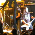 Mit (wie immer) leichter Verspätung betraten gegen null Uhr BREAKER die Bühne, die neben neuen Songs auch einen neuen Sänger präsentierten, der wirklich aus sich heraus ging. "You crazy German Metal Maniacs", rief er mehrmals durchs Mikro und ließ verlauten, dass er solche Fans wie die deutschen noch nie zuvor erlebt habe. Und zu Recht: die Meute feierte die zurückgekehrten Söhne nach allen Regeln der Kunst ab, die, außer mit neuen Werken, natürlich mit alten US Metal - Classix von "Get Tough" und der "Accept" - EP aufwarteten. Jedenfalls ließ es sich der Fronter nicht nehmen, ganze drei (!!!) Mal mit Anlauf ins Publikum zu springen, das ihn stets bis zum Ende der Menge trug. Nicht nur, dass er sich bei seiner Rumhampelei auf den Brettern hätte verletzen können (es war ein paar Mal, aufgrund der engen Bühne, richtig knapp…), einmal sprang er dem Verfasser dieser Zeilen fast ins Gesicht. Das hätte aber symbolisch für den gesamten Gig gestanden: Metal in the Face… (do)