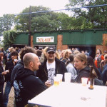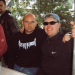 Metalgod Götz vom Rock Hard ist allseits beliebt wird immer wieder zu Fotos gebeten (siehe Galerie) und ist stets freundlich. Selbst ein ordentlicher Regenguss machte ihm nix aus. Leichtsinnigerweise stellte er sich bei DESASTER nämlich an den Rand der über dem Konzertgelände hängenden Plane. Und als das Maß oben voll war, kam eine ordentliche Husche herunter - genau auf Götzens Kutte. Lapidarer Kommentar: "Ich stehe immer da wo’s nass ist:"