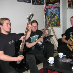 Der Bassist Jukka-Pekka und Petri treffen nur wenige Minuten nach mir ein. "Ich brauch einen Kaffee", stöhnt Jukka-Pekka kaum das er das Zimmer betritt. Also wird erst einmal Kaffee gekocht, ein Bier geöffnet und dann beginnt die Probe. Ich höre nun "Lai Lai Hei" als exlusive Liveversion von allen drei Musikern gesungen und habe dann auch noch die Möglichkeit, mich über dies und jenes zu unterhalten. Mit ihrer vergangenen Tournee scheinen alle drei sehr zufrieden: "Eine rundum gelungene Tour! Der Auftritt in Essen war aber mit Abstand der beste, die Stimmung war einfach unglaublich!"