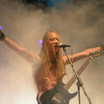 Es waren ja nicht ganz wenige so richtig böse Bands am Start. Und viele der Fans machten sich demzufolge auch ein bisschen lustig über ENSIFERUM. Zum einen sahen sie vom hörbaren Einsatz des Schlüsselbretts eben nicht ab, zum anderen grinsten die Herrschaften um die Norther-Aushilfe über alle Ohren. Doch nach ein paar Minuten schien es, als hätten die Finnen die Thüringer Hölle geeint. Mit Flitzefingern und tollen Melodien trieben die Grinsgesichter die Partisanen zum Ausrasten, sie polkten und tanzten, sie sangen, sie sprangen. ENSIFERUM schmiedeten das Eisen, so lange die 6000 heiß waren. Und das machte eine Drei-Viertelstunde lange mächtig Freude. Ob Songs wie "Iron" nun Jahrhundertwerke sind und der Gig aus dem PSOA 2004 für die Ewgikeit war (wie es ein angesäuselter Kollege lauthals durch die Backstube schwadronierte) sei mal dahin gestellt. Aber eine schöne Abwechslung waren ENSIFERUM allemal. Tolle Live-Band! (memme)