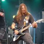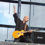 Von HATESPHERE schienen sich die Leute mehr Sport zu versprechen, rund um die größte Pfütze herum herrschte Andrang, gegen Ende des Sets grindeten die Fans des Dänen-Thrashs auch mit wachsender Begeisterung gegen das Wasser und hinterließen so lustige Spritzer auf den Umstehenden. Dank der dicken Wolken bekamen HATESPHERE zur schönsten Mittagszeit eine amtliche Lightshow. Und wie die Kreissäge auf ihrem Backdrop drehten sich die Köpfe, der Haar-Hubschrauber rotierte. HATESPHERE setzen