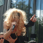 Ein lustig schwäbisch schwätzendes Mädle kam mir lachend entgegen: "Die muscht du sehen, der Sänger haut sich Sachen an den Kopf und schpringt halbnackig herum." HONIGDIEB fielen schon musikalisch extrem aus dem sonstigen Billing heraus - und hatten trotzdem oder gerade deswegen alle Lacher auf ihrer Seite. Sogar die eigenen. Sir Hannes tobte und turnte über die Bühne, sang von Frauen, die er nicht will und gab das erfrischende Enfant Terrible. Pech für die Madam.