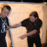 Bobby Schottkowski von SODOM brachte es am Freitag zum "Mitarbeiter des Tages". Als die Securityfrau, die den Cateringzugang bewachte, wegen einer Erkältung ausgetauscht werden mußte und für ca 15 Minuten kein "Springer" aufgetrieben werden konnte, übernahm der SODOM-Drummer diese