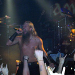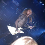 Als nach einer ziemlich langen Umbaupause das Saallicht ausging und die Wikinger AMON AMARTH auf die Bühne kamen, machte der einsetzende Jubel deutlich, wem die Sympathien heute gelten würden. Johan und seine Mannen legten dann los wie die Feuerwehr und kloppten sich in den folgenden neunzig Minuten durch einen schön gemischten Set und ließen sowohl Songs vom neuen Album "Fate Of Norns" als auch alte Kamellen bis zurück zur "Once Sent From The Golden Hall" ertönen. Man merkt jedem Einzelnen bei AMON AMARTH an, dass er Lust auf Live-Action hat und bereit ist, alles zu geben, um eine gute Show zu machen. So auch heute - blieb schon im Publikum kein Kopf ruhig auf den Schultern, posten und bangten die Schweden auf der Bühne wie die Weltmeister. Johan natürlich alles überragend mit seiner mittlerweile stattlichen Plautze und seinem Busch im Gesicht, mit dem sich vortrefflich bangen lässt. Musikalisch eh top, sind AMON AMARTH zu einer richtig geilen Live-Band gereift, die an diesem Abend bewiesen hat, dass sie sowohl auf großen Festivals bestehen kann als auch (mit fast 1200 Fans) ausverkaufte Clubs zum Kochen bringen kann. Das war ganz ganz großer schwedischer Metal. Die Leute feierten AMON AMARTH ohne Ende, moshende Gestalten wohin man sah (selbst die Abordnung aus der Roten Flora machte mit) und Pommesgabel bis rauf auf die Galerie. Klassiker und neue Songs reihten sich aneinander, Großartig! (lh)