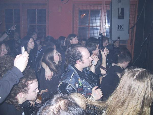 ... und sind dort eindeutig als die Band aufgefallen, die regelmäßig am weitesten neben der Spur spielte. Also haben CARPATHIAN FOREST schon fast einen Ruf zu verlieren: den Ruf, innerhalb des Black Metal die inkonsistenteste, asozialste (erinnert sei an das Kotz-Solo auf dem Wacken 2003) und besoffenste Live-Band zu sein. Gemessen daran haben CARPATHIAN FOREST hier in Hamburg einen überdurchschnittlich soliden Set gespielt. Die Instrumenten-Fraktion ist tight wie sau, besonders Gitarrero Tchort und Schlagzeuger A.Kobro halten den Hühnerhaufen zusammen und spielen präzise wie ein norwegisches Uhrwerk - also genau bei jeder erdenklichen Temperatur. Die ist bei CARPATHIAN FOREST auch gleich 10 Grad höher als bei der letzten Vorband. Den "Suicide Song" und "Pierced Genitalia" braucht die Band noch um sich auszurumpeln, ausgerechnet beim breaklastigen "Skjend hans lik" finden sie zu ihrer Form. Allerdings ist nicht alles Roger, aber ohne Roger funktioniert es nicht: Sänger Nattefrost steht ohne Mikrofonständer auf der Bühne wie ein Schluck Wasser in der Kurve und schwankt wie ein Matrose auf dem ersten Landgang ohne Reeling nach Wochen in der schweren See. Zu allem Überfluss schwankt er so fast nüchtern, da er zwei Tag zuvor auf der Bühne ohnmächtig aus den Latschen gekippt ist. Aber, Gossip beiseite: Das hier ist der tighteste Gig, den ich je von CARPATHIAN FOREST gesehen habe, die Zugabe haben sie sich verdient und die Zuschauer sich ebenso hart erklatscht - auch wenn sie aus ihrem ellenlangen Backkatalog besser den einen oder anderen Song hätten skippen und stattdessen ihrer Vorband fünf Minuten mehr Zeit für einen weiteren gecoverten Klassiker lassen sollen... Aber das steht auf einem anderen Blatt. (laetti)