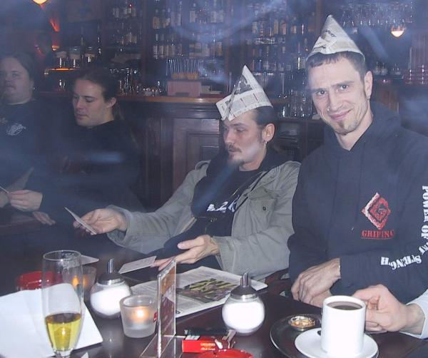 Und wie verbringt der gemeine Deutsche nun einen Samstag-Nachmittag? Richtig- Mit Fußball gucken. Und so zog der Troß weiter - in eine alt-rustikale St.Pauli-Kneipe, mit Premiere-Fernsehen. Bei Herbert gab’s dann Astra bis zum Abwinken. Zwar haben die Nordlichter nicht wirklich viel Ahnung von Fußball, Pasanen und Litmanen erkannten sie auf der Mattscheibe dann doch. Und siehe da: Bei der fröhlichen Wettrunde strich dann auch kein deutscher Fußballkenner von Soulfood oder Sureshot den Pott ein, sondern der schweigsame Lord Euren.