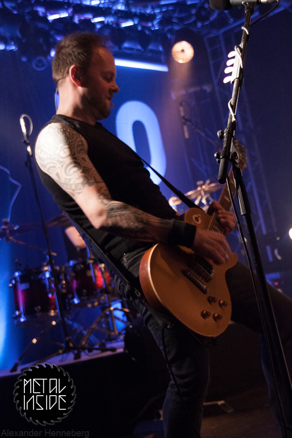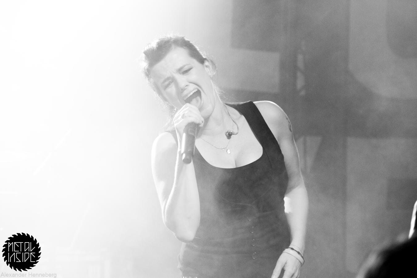 Nach ihrer etwa 50 Minütigen Darbietung verabschiedeten Sie sich vom ganz gut angeheizten Publikum, das sich nun langsam mehr zusammen drängte und aufgeregt DIE HAPPY erwarteten. Nach einigen Minuten des Umbaus, begann eine nette kleine Lichtshow die ein Jubeln auslöste. Ordentlich Rockig begann es und Marta war gleich von beginn an voll dabei. Von einer Schwangerschaft war bereits nichts mehr zu spüren. Immer wieder heizte sie dem Publikum richtig ein und animierte es zum mitmachen. Und nicht nur zum Publikum hatte sie einen guten Draht, sondern auch zu ihrer Eigenen Band, das sie durch eine gute Performance, kleine Spielereien und schönen Blickkontakt während der Songs unter beweis stellte. Der beste Song von DIE HAPPY war in meinen Augen „I Could Die Happy“, zwar waren die meisten Songs an diesem Abend auch gut, doch eben nicht so gut wie dieser.