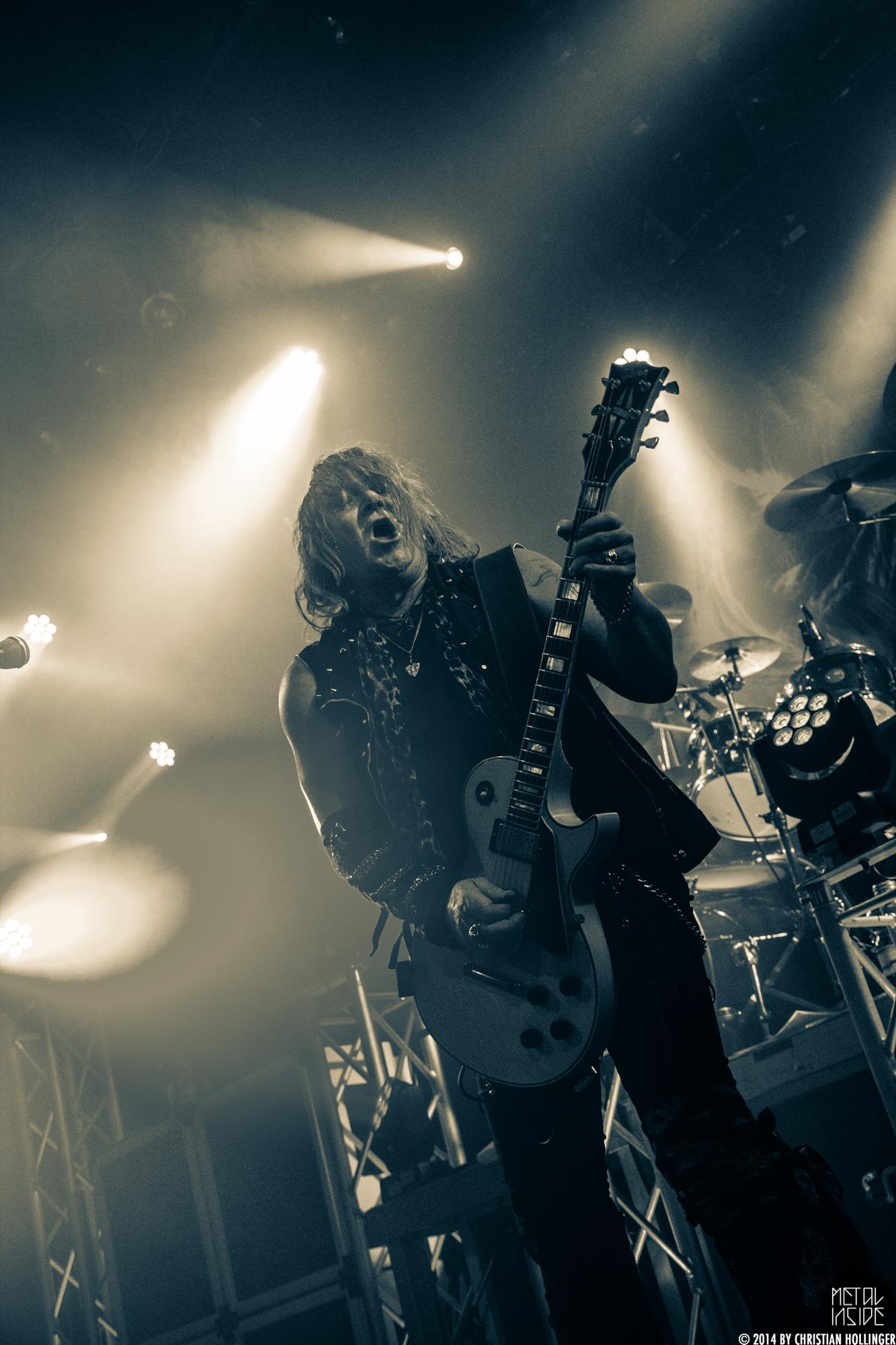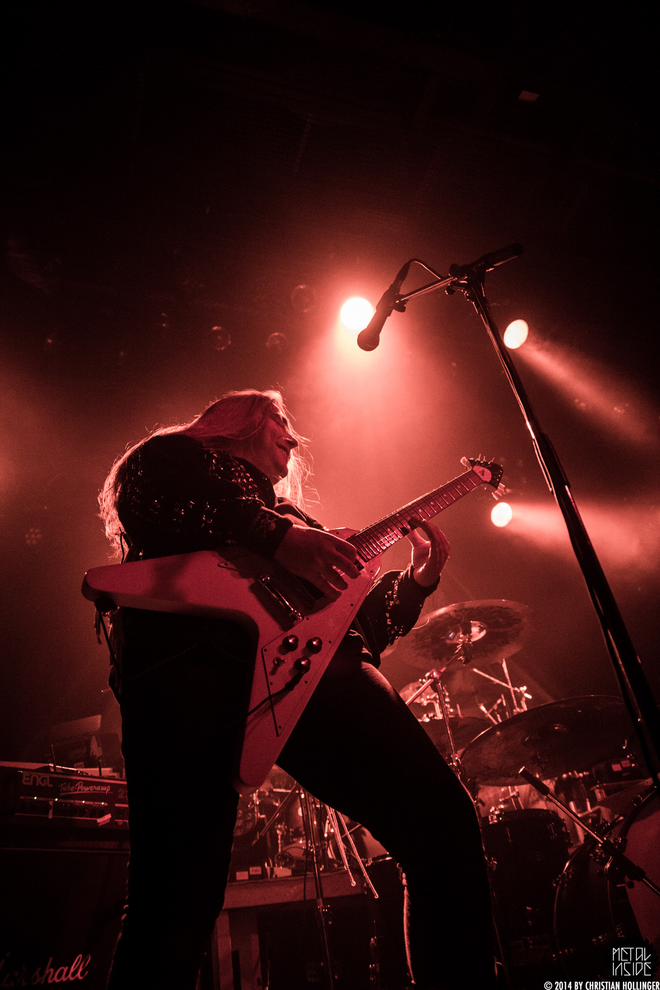 Ich bin ehrlich – mich erinnerte das an eine gewisse MOTÖRHEAD-Show, wo das Solo etwas länger als normal war und Lemmy hinter der Bühne vermutlich von 10 Ärzten geflickt worden ist – war dann aber doch halb so wild und die Show wurde danach mit „Blood Religion“ von Hansen selber auch weitergeführt, selbstverständlich nicht ohne blöde Kommentare („Untot sein ist eigentlich gar nicht mal so scheiße“, wusste man zu philosophieren), welche die Menge natürlich dementsprechend gut aufnahm. Auch ein kranker Kai Hansen ist eben ein Live-Musiker – das gilt übrigens auch voll für die Gitarren-Performance.