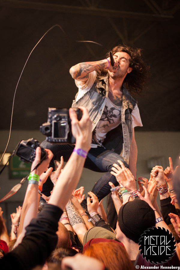 Das erste das mir diesmal auffiel war, dass mir der wohl buntest-gemischte Haufen von allem gegenüber stand. Da hatten wir einen Jungspund mit langer Zottelmähne, einen wütend dreinblickenden Wikinger in Metalkluft, einen Zac Efron mit langen Haaren und einen irgendwie typischen Metalcore-Sänger. Doch so wenig sie vom Erscheinungsbild auch zu einander passten umso besser passten sie Musikalisch zu einander. So legten sie eine 1A Leistung hin, die vom Publikum auch sehr gut angenommen wurde. Neben einigen Sprüngen in das Publikum gab es noch eine gute mobile Synthesizer Performance und ein gegenseitiges spielen der Gitarren durch die beiden Gitarristen.