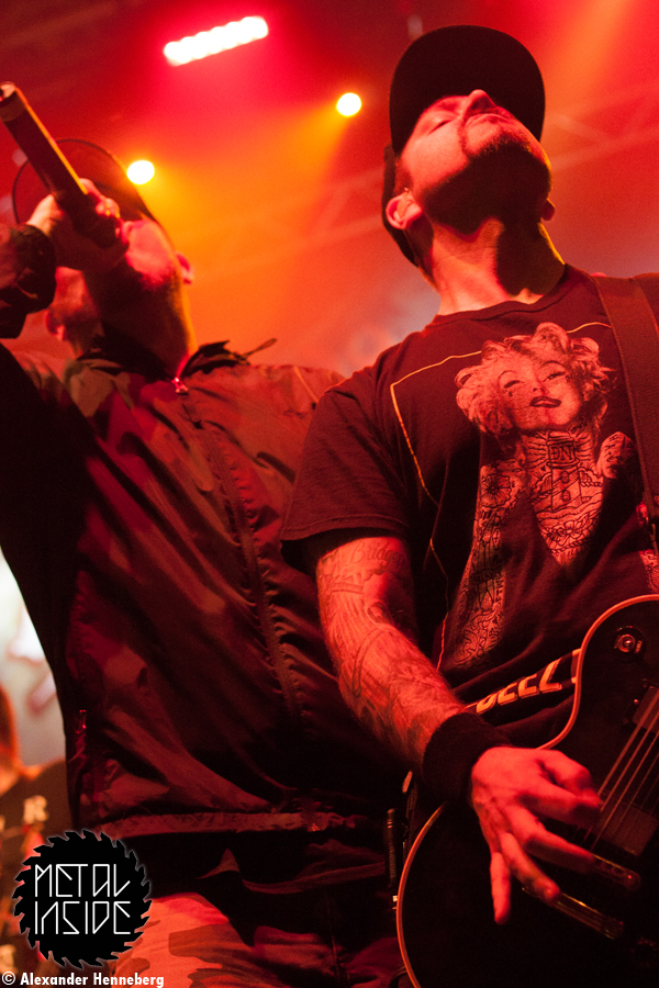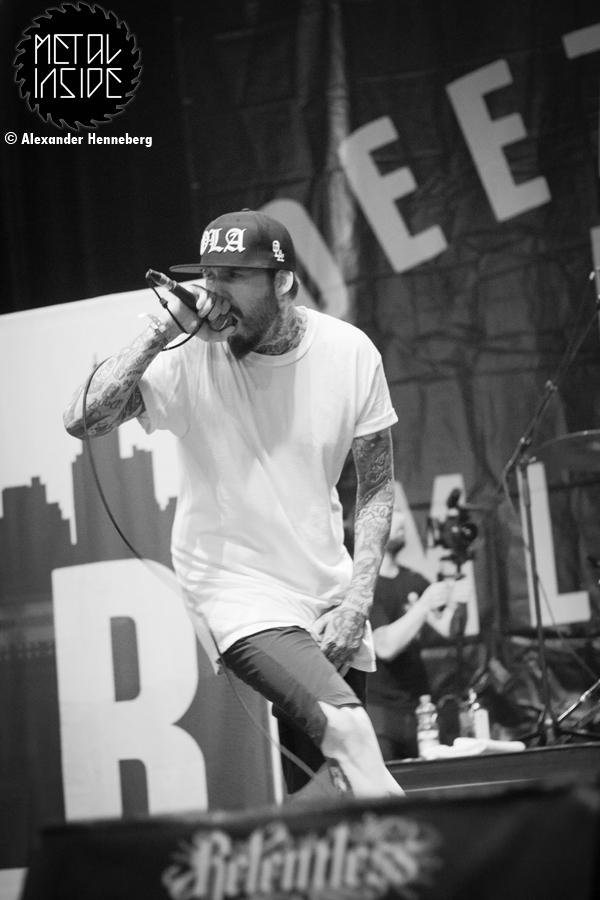 Nach der verhältnismäßig sanften Band, wurde es bei STICK TO YOUR GUNS ziemlich hart. Das Publikum wurde auch deutlich aggressiver, so dass es mehr moshen, Pit’s und Crowdsurfer als bisher gab. Auch der Presse graben selbst fühlt sich merklich und aus anfangs vielleicht 5-7 Fotografen und Kameraleuten sind inzwischen an die Zwanzig geworden. Man merkte förmlich wie die ganze Band in Ihrem Element war, doch besonders Gitarrist Joshua „Josh“ James wirkte wie in seiner eigenen kleinen Welt, eins zu sein mit seinem Instrument schien Ihm normal.