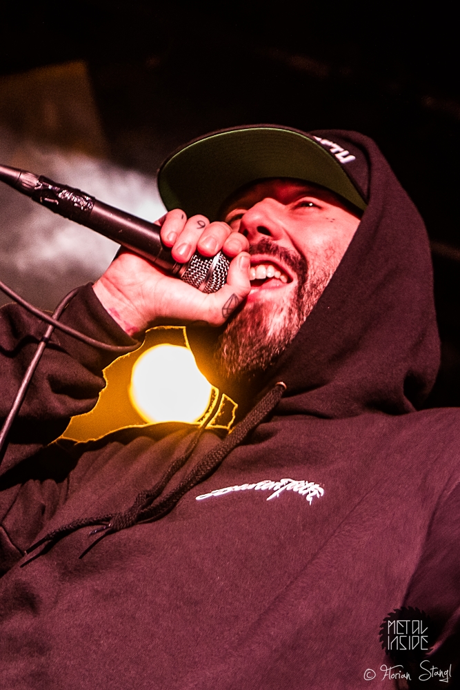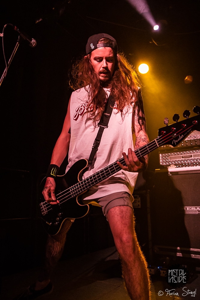Als die jungen Briten von BROKEN TEETH die Bühne enterten, lungerte ein Großteil der Besucher noch im Biergarten des Hirsch herum. Schade eigentlich, denn die Truppe spielte brachialen Hardcore und versprühte gute Laune, auch wenn sie natürlich nicht die abgezockte Reife von DEEZ NUTS oder TERROR besitzen. Ob ihr Facebook-Aufruf vor der Show, in dem sie nach Bezugsquellen für Gras fragten, etwas gebracht hatte, weiß ich nicht. Sonderlich breit wirkten die Burschen jedenfalls nicht…