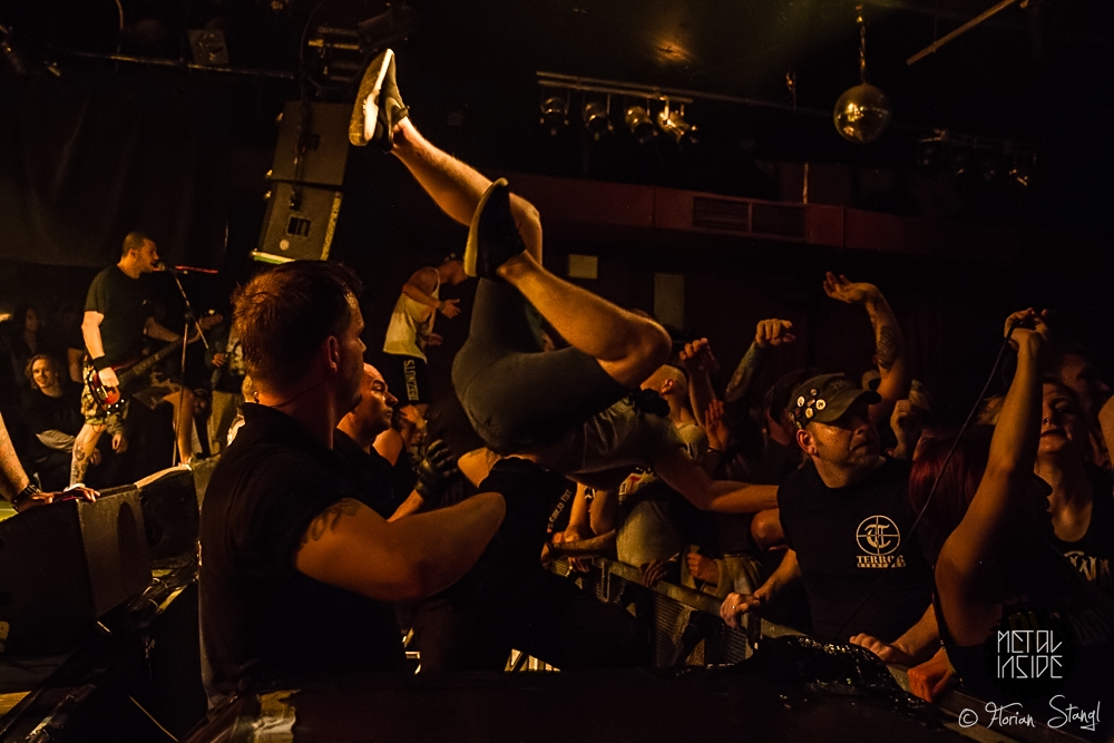 Wahrscheinlich wollten sich das alle für TERROR aufheben. Scott Vogel schien auch nur darauf gewartet zu haben, denn schnell stellte er klar, wie der Abend laufen sollte: „Ich hasse diesen scheiß Graben, ich hasse ihn! Los, scheißt auch drauf, kommt her und habt Spaß! Die Security ist cool!“ Volltreffer, darauf schien Nürnberg nur gewartet zu haben.