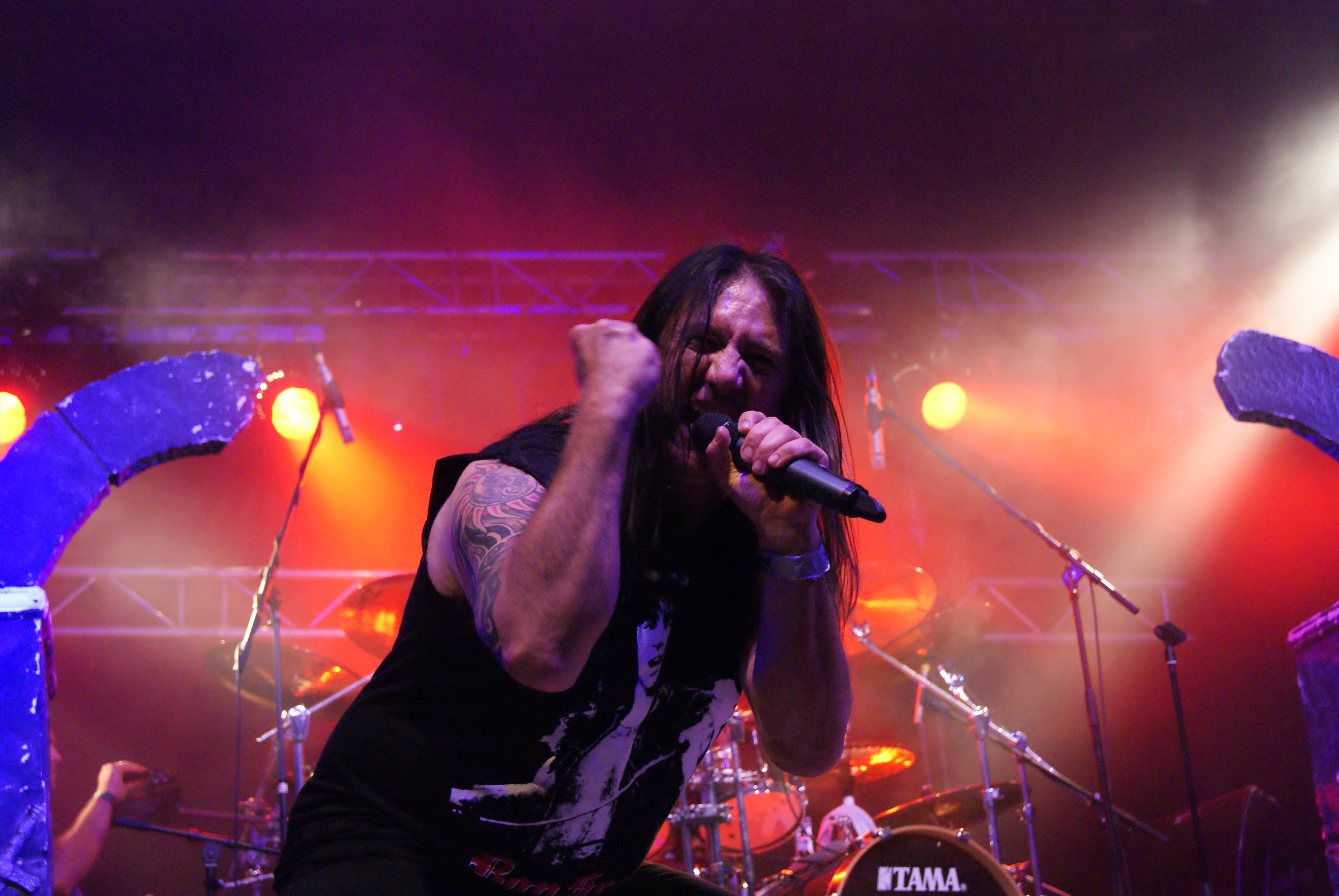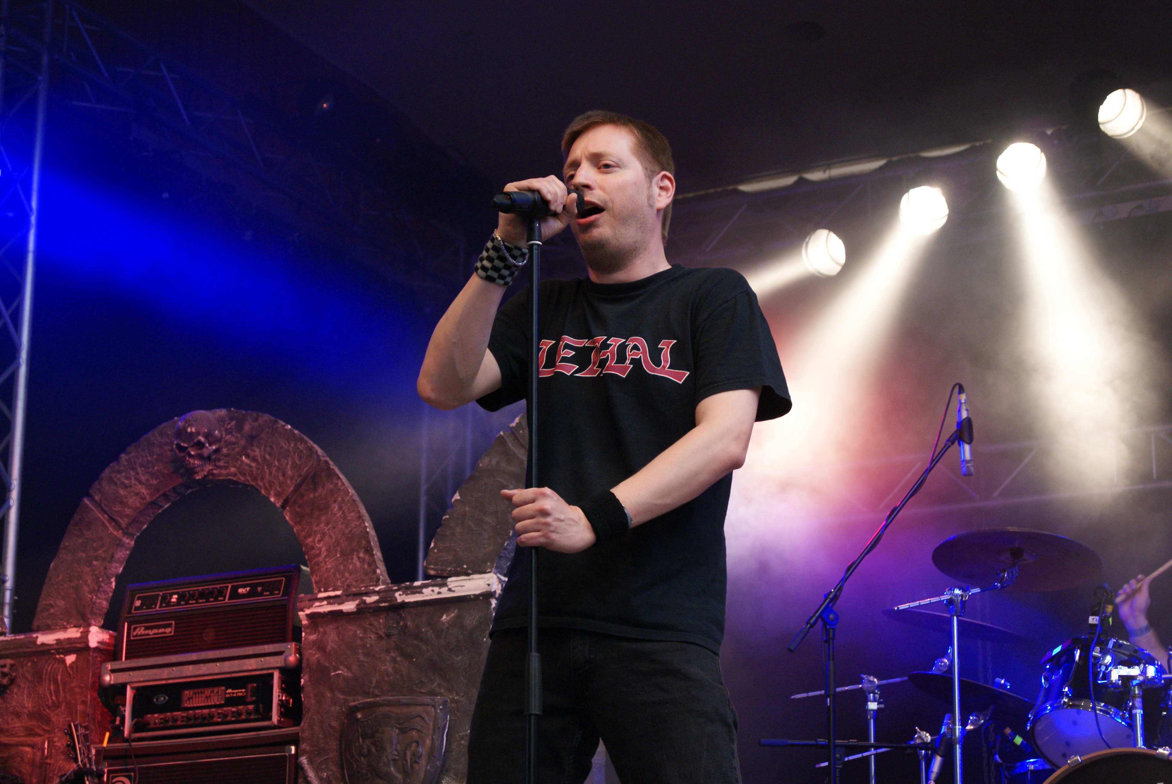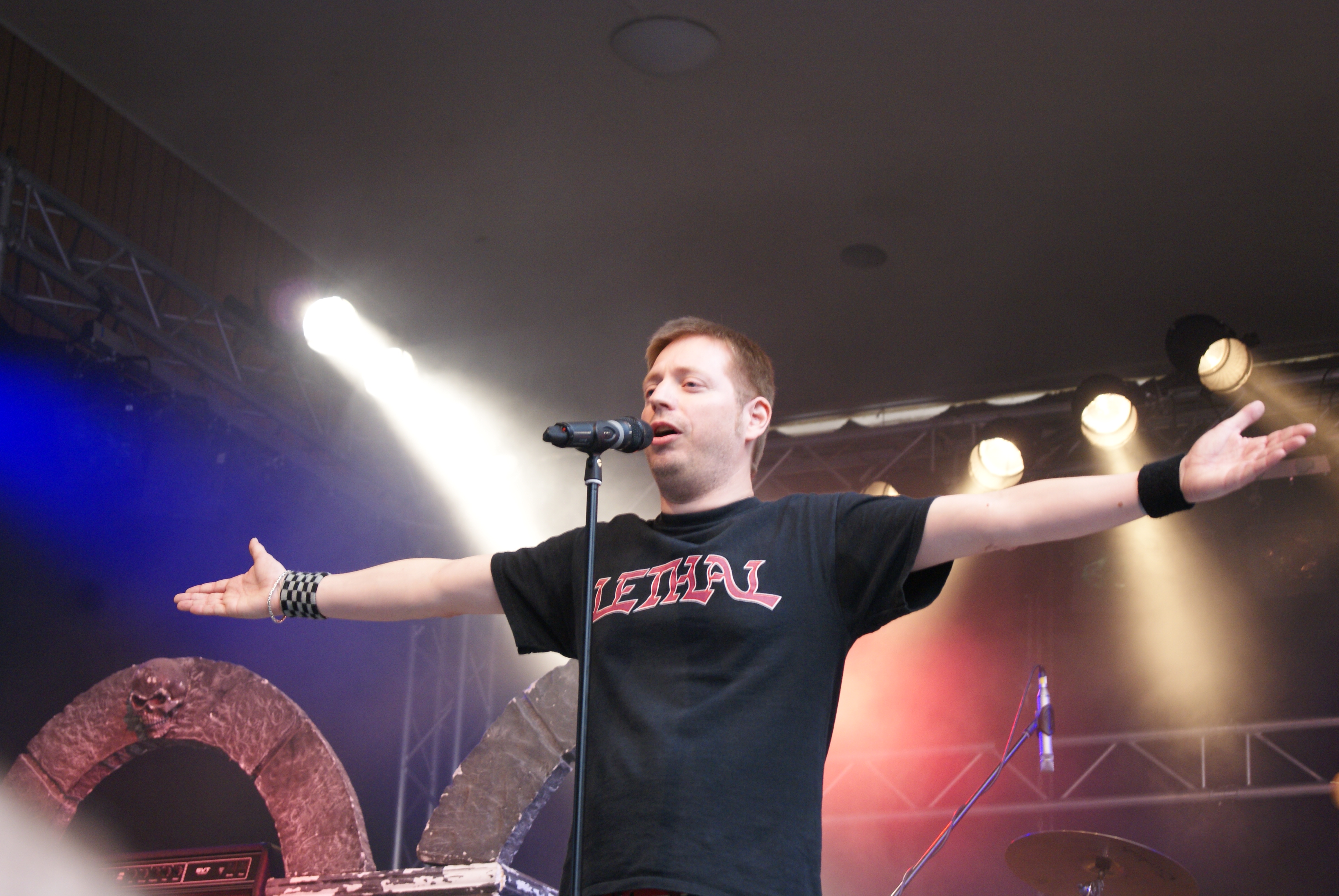 LETHAL sind so etwas wie die Blaupause einer klassischen US Metal Band: Technisch beschlagen und doch catchy, kraftvoll und doch melodiös und mit einem Sangesgott gesegnet, der auch einem jungen Goeff Tate zeigen würde wo der Frosch die Locken hat. Diese Show war als Tribut an ihren verstorbenen Gitarristen Eric Cook gedacht. Neu-Gitarrist Chris Brown hielt sich sehr zurück und gestaltete seinen Part zwar künstlerisch wertvoll, ohne sich jedoch in den Vordergrund spielen zu müssen. Die anderen Mitglieder gaben aber nicht nur musikalisch, sondern auch körperlich alles. David McElfresh tobte über die Bühne und ließ in seiner schnoddrigen Art Erinnerungen an BREAKER's Don Depew aufkommen. Highlight jedoch ist und bleibt Frontlurch Tom Mallicoat. Der Mann ist einfach nicht von dieser Welt. Einerseits tabst er über die Bühne, als ob er gerade gar nicht wüsste wo er sich befindet, dann haut er Ansagen 'raus, die für normalsterbliche überhaupt keinen Sinn ergeben und dann (und das ist das Wichtigste) begeistert er mit einer stimmlichen Brillianz, die seines gleichen sucht. Jeder Ton, jede Phrasierung sitzt genau da wo sie hingehört. Damit werden eh schon sensationelle Songs wie „Fire In Your Skin“ oder „Obscure The Sky“ zu absoluten Pretiosen der Schwermetallkunst. LETHAL sind und bleiben absolut einzigartig. Und so bleibt als einziger kleiner Kritikpunkt: Wo bleibt das seit Jahren angekündigte neue Album bzw. zumindest eine E.P. sollte es ja sein!!!!