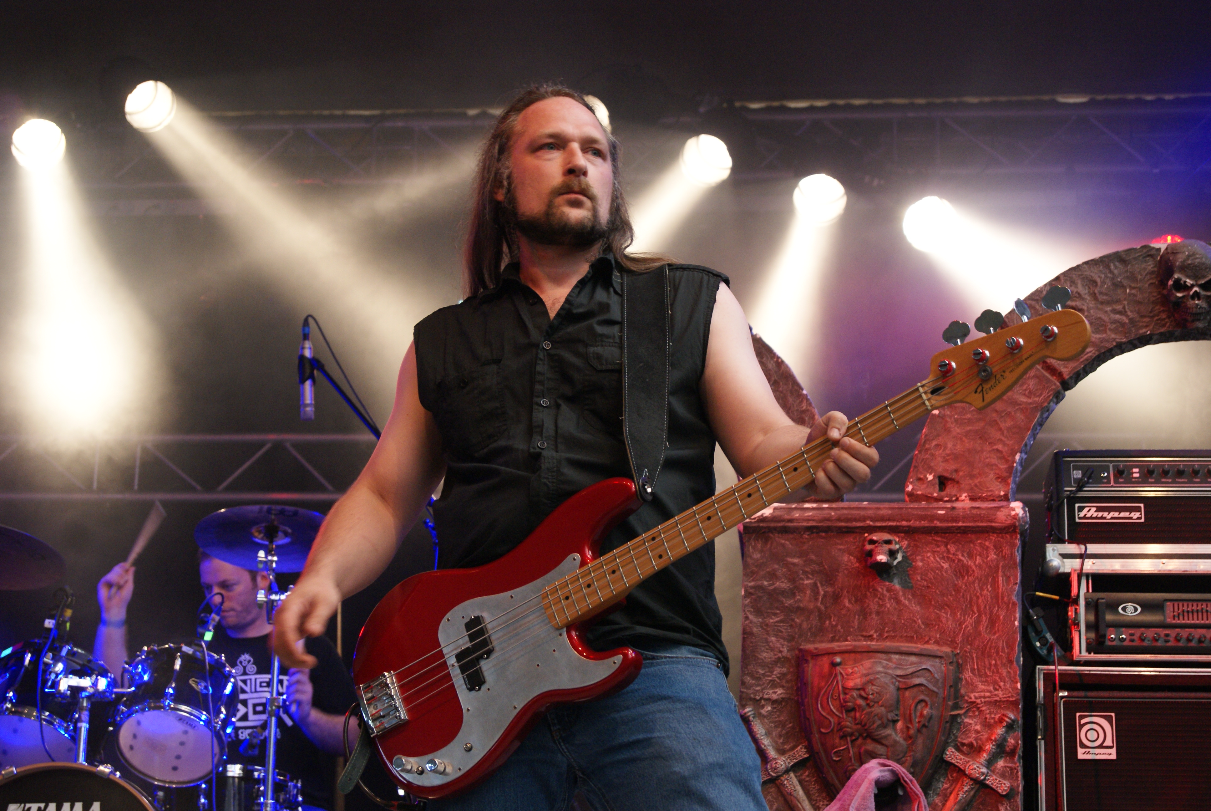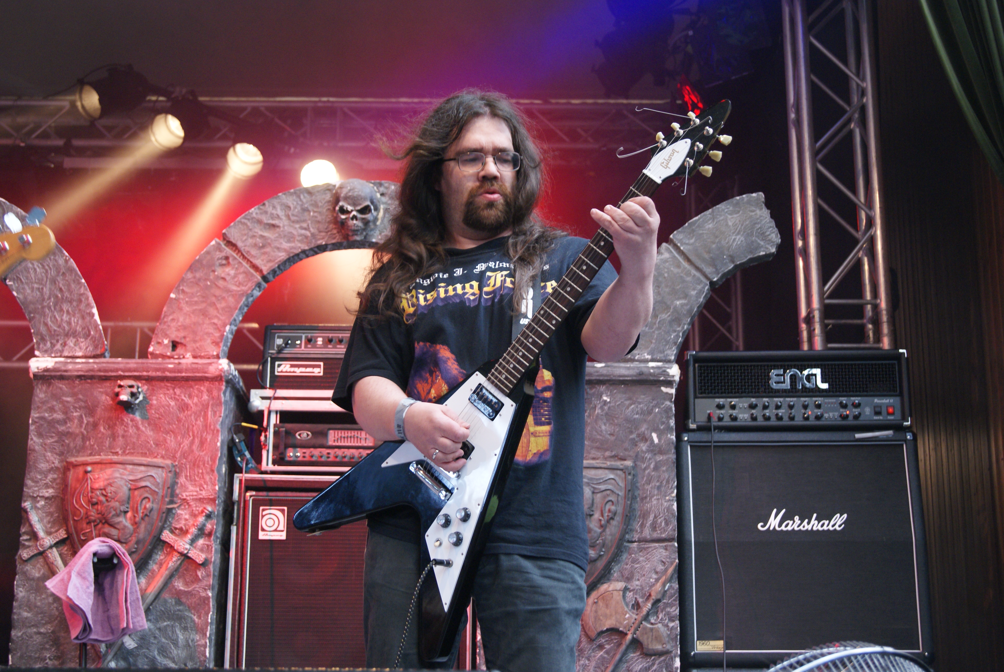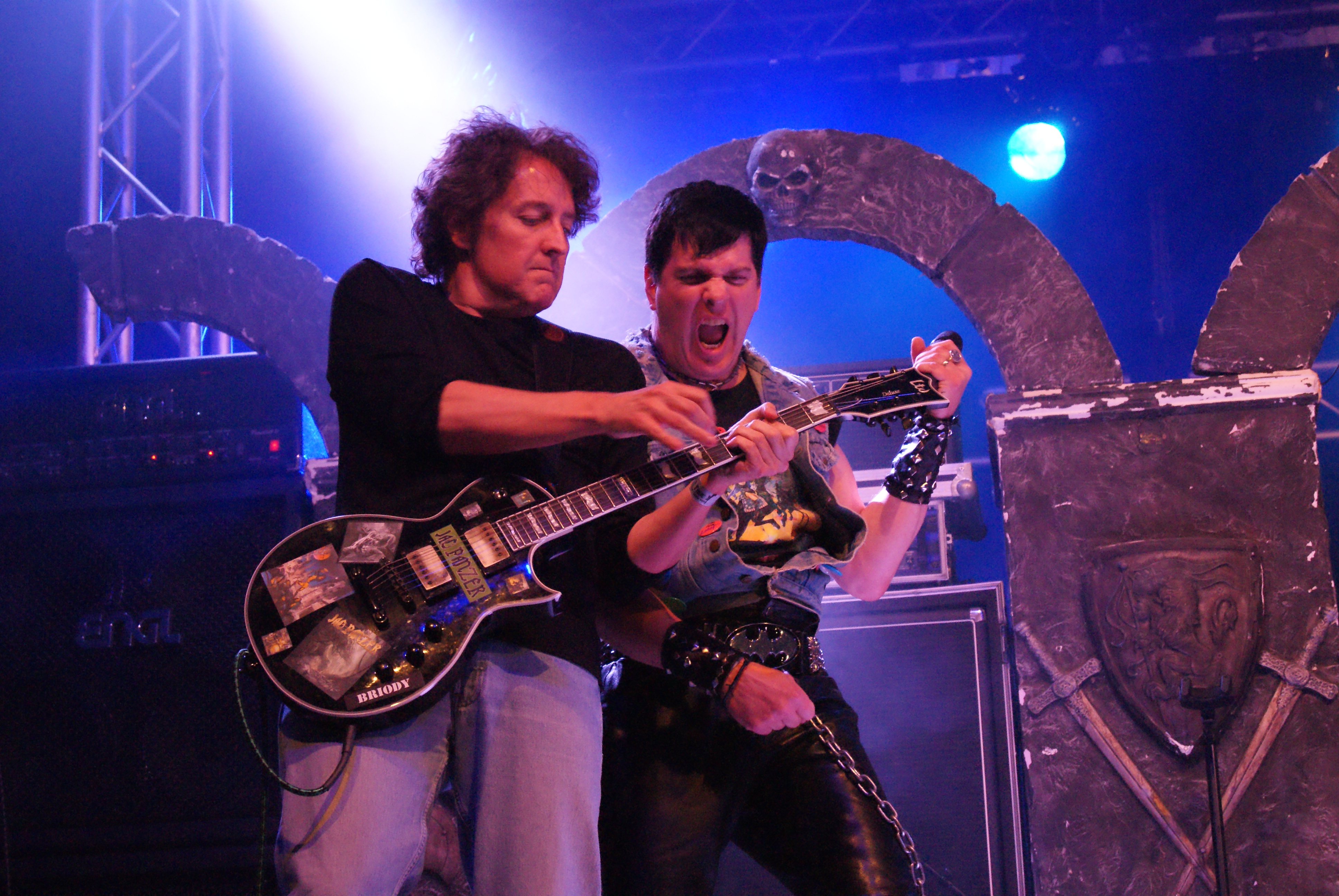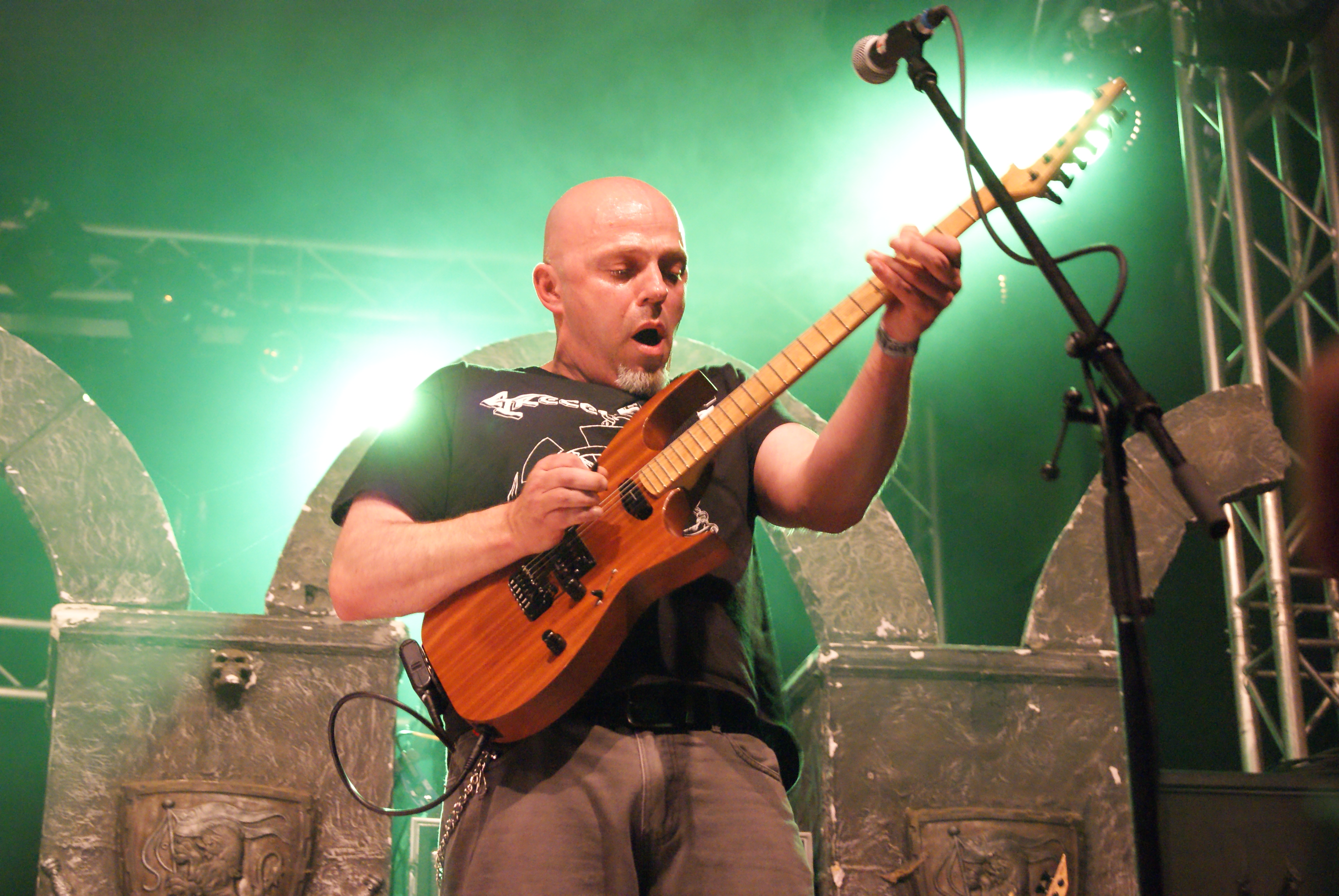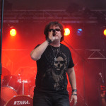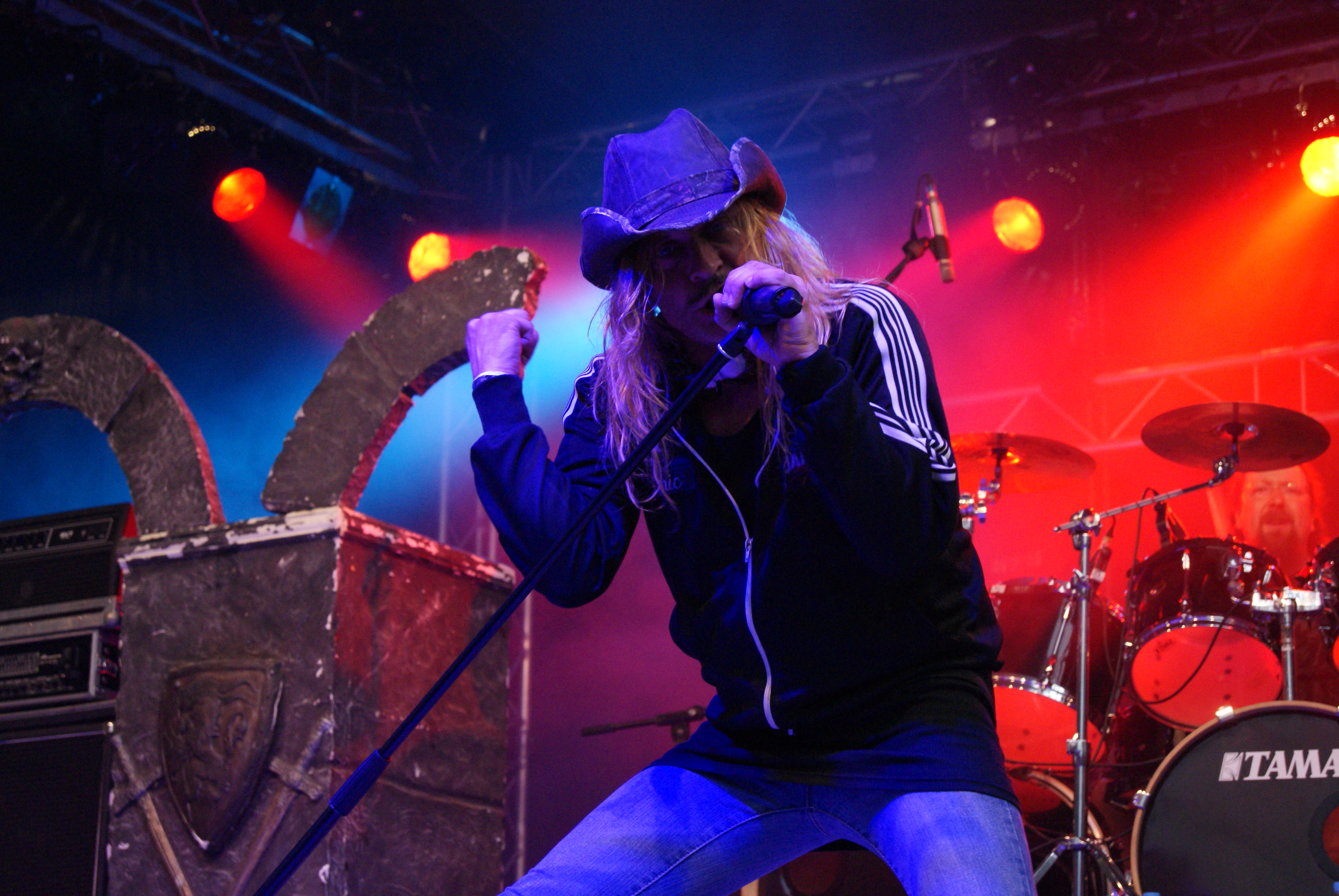 JAG PANZER sind nun schon zum dritten Mal Gast auf dem KIT, Frontmann Harry „The Tyrant“ Conklin sogar schon zum fünften Mal, da er auch schon mit SATAN'S HOST und TITAN FORCE Halt in Lauda-Königshofen machte. Dieses Mal brachten JAG PANZER ihren Original Sechssaiter Joey Tafolla mit. Dies wiederum hatte zur Folge, dass sich JAG PANZER nahezu ausschließlich auf ihr Frühwerk konzentrierten. Nach drei E.P. Songs (nur „Iron Shadows“ fehlte“), kam das legendäre Erstlingswerk „Ample Destruction“ komplett zum Zuge. Das letzte Drittel bestand aus „Shadow Thief“, „Chain Of Command“, 4 Songs vom `97er „The Forth Judgement“ und dem ACCEPT-Cover „Fast As A Shark“. Eigentlich kann ja da gar nichts schief gehen...eigentlich... Aber manchmal kommt es anders als man denkt. Bassist John Tetley war angeschlagen und musste die Show auf einem Case sitzend verbringen, Joey Tafolla kann zwar spielen, versprüht aber so viel Metal-Charisma wie Angela Merkel und der Tyrant himself war dermaßen heiser, dass man schon fast Mitleid mit ihm haben konnte. Er kämpfte zwar tapfer um jeden Ton, selbigen verlor er im Laufe des Abends immer öfter...also sowohl den Kampf, als auch den Ton. Gegen Ende kamen sogar Death / Black-artige Kreationen von der Bühne und die sonst so kraftvollen und klaren Höhen waren nur mehr ein heiseres Krächzen. So gesehen war die Wahl des Cover Songs zum Schluß nur konsequent. Heißt summa summarum: Musikalisch toll, Setlist legendär, Performance arg durchwachsen. Hoffen wir, daß es nächstes Jahr wieder besser tönt, wenn der Tyrant mit TITAN FORCE zurück kehrt, und vielleicht gibt’s ja dann ein Duett mit Michael Todd Hall bei RIOT V und die Herren performen „Magic Maker“ oder „Medicine Man“. Aber das ist Zukunftsmusik.
