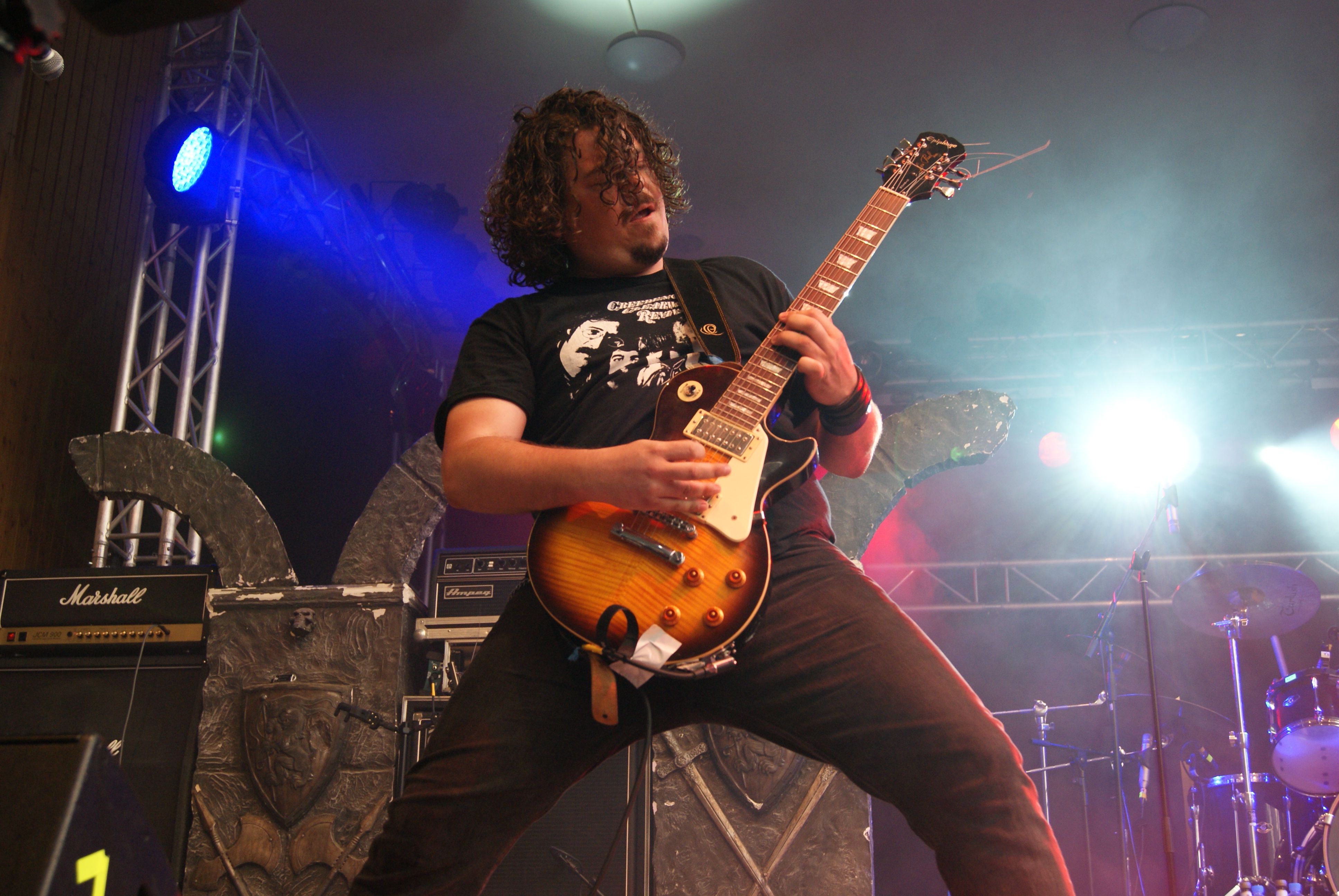 Nun durften sich die Texas-Metaller KARION beweisen. Genau genommen waren KARION auch wieder eine typische KIT-Wundertüte. Denn außer mit zwei Demos in den 80ern und einer EP im Eigenvertrieb (bestehend aus den Demosongs) aus dem Jahr 2012 fiel die Texas-Blase nicht gerade durch einen Veröffentlichungs-Overkill auf. Aber KARION hatten noch einen Trumpf im Ärmel, denn sowohl Sänger Chris Cronk als auch Gitarrist Art Villareal haben eine Vergangenheit bei den semi-legendären S.A. SLAYER (bevor einer meckert: Das S.A. steht für San Antonio, da es in L.A. ja noch andere SLAYER gibt). Und so wurde neben sechs KARION Songs die komplette „Prepare To Die“ E.P. von S.A. SLAYER dargeboten, was den Anwesenden ziemlich gut rein lief. Und auch die KARION Songs wussten mit klassischem „Texas-Metal“ (kraftvoll, technisch, komplex und doch hymnisch) zu überzeugen. Nur die Vergangenheit von Ex-RIOT Basser Pete Perez wurde nicht bedacht, was angesichts der Spielzeit aber auch nur zu verständlich ist.
