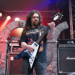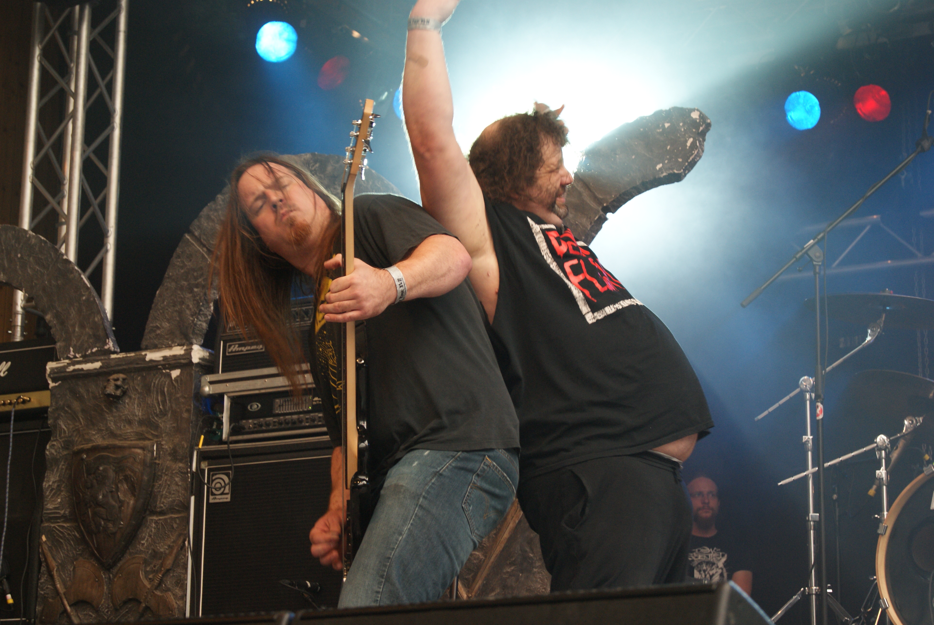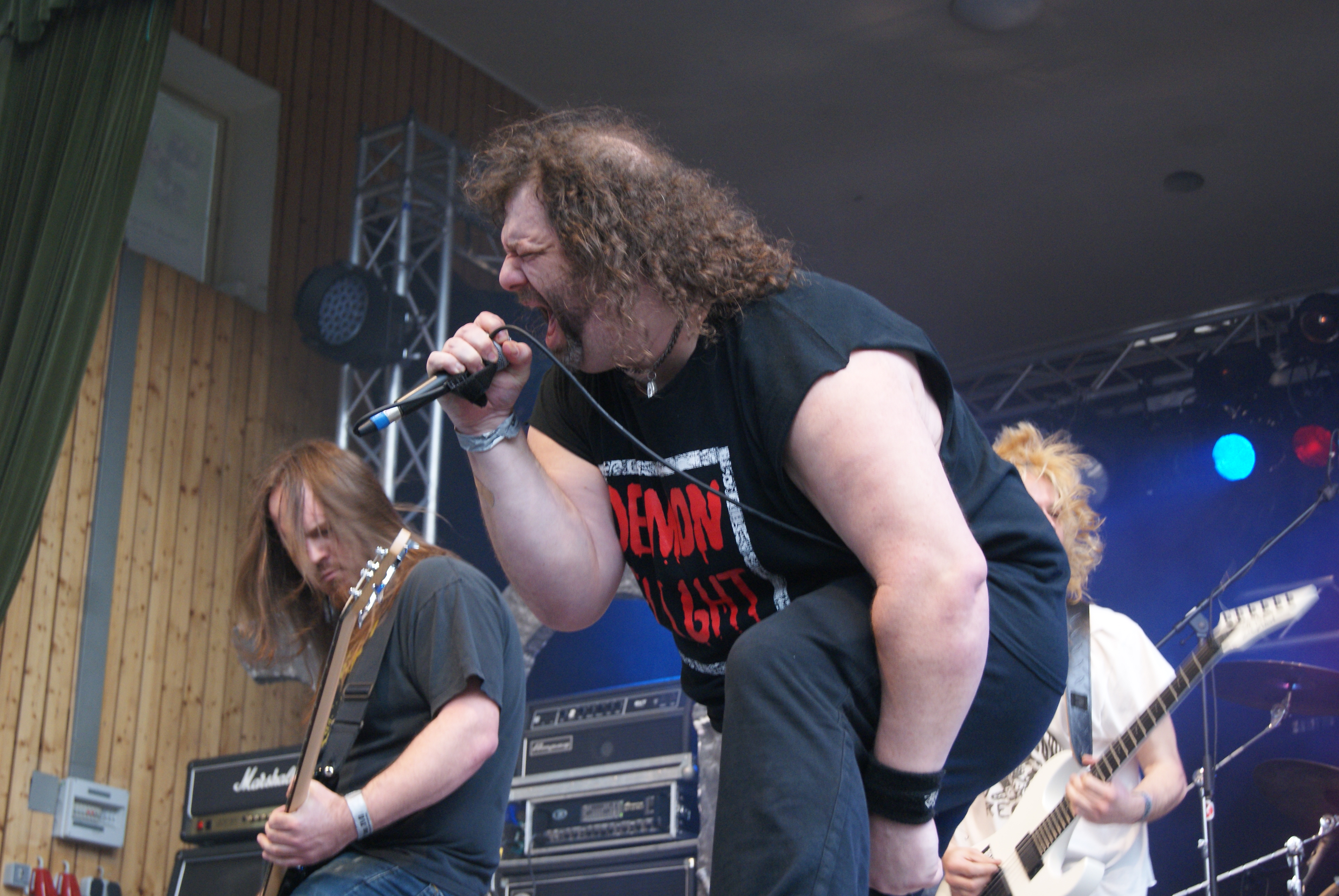 Das spanische Speedkommando IRON CURTAIN war dann als nächstes an der Reihe. Ich kannte bis dato das neue Album der Herren noch nicht, aber im Vergleich zum Debut und der Demo-Compilation „B-Days“ kamen mir IRON CURTAIN live sogar einen Tacken melodischer vor. Gerade der Gesang von Mike Leprosy hat definitiv an Kraft und Ausdruck gewonnen. Natürlich lugen musikalisch nach wie vor EXCITER, MOTÖRHEAD und alte ABATTOIR um die Ecke, jedoch werden IRON CURTAIN immer eigenständiger und würzen ihren räudigen Speed Metal mit immer mehr Musikalität. 100 % Metal, 100 % authentisch – das hat gefallen.