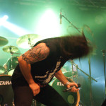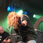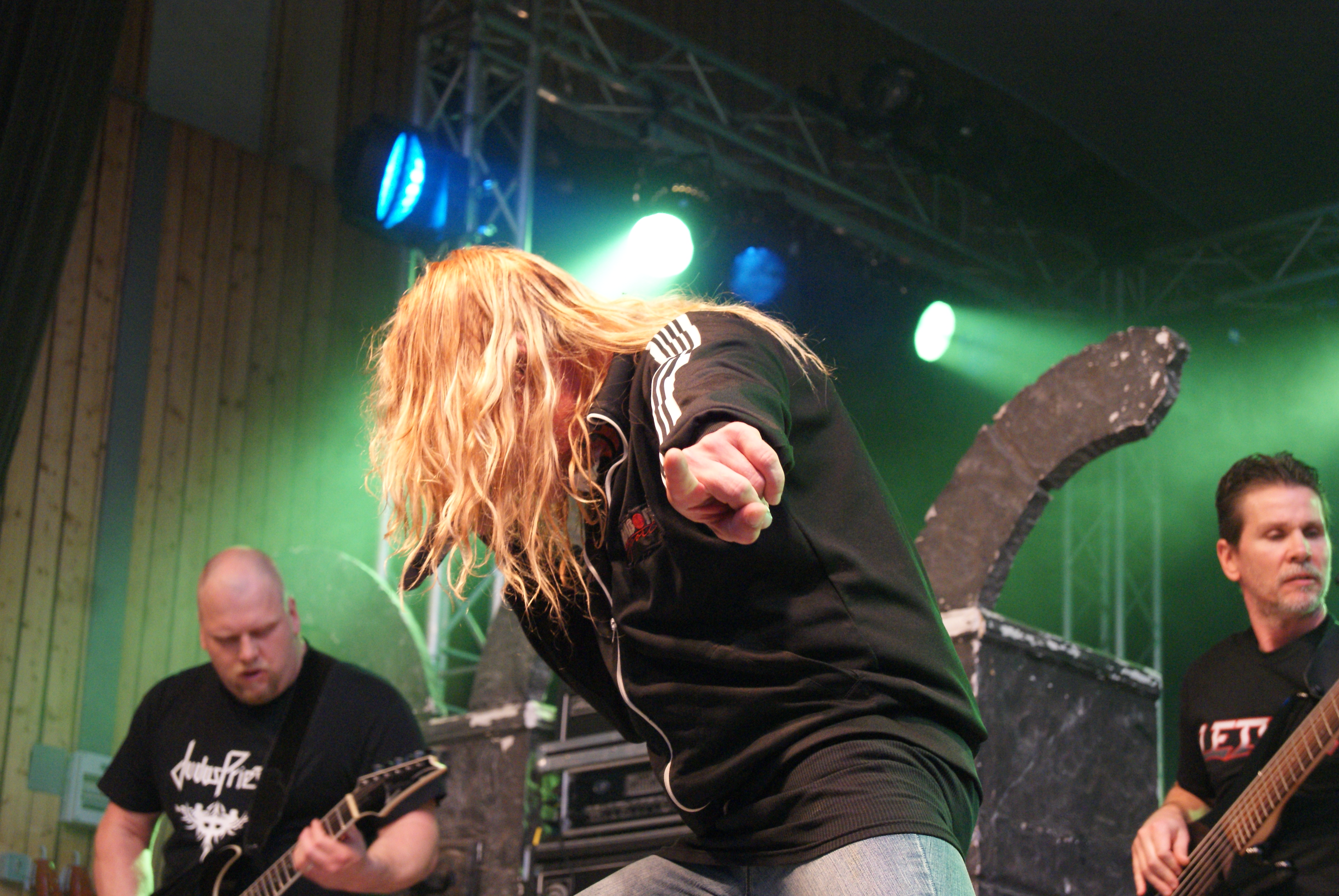 Jetzt wurde es noch mal eine Ecke komplexer. Zu ihren aktiven Zeiten gehörten TOXIK zusammen mit WATCHTOWER, ANACRUSIS und REALM zu den progressivsten Thrash Bands. Am ehesten passten TOXIK musikalisch immer mit REALM zusammen. Einerseits verfrickelt, andererseits bleiben Refrains wie bei „Greed“, „Spontaneous“ oder „World Circus“ sofort im Ohr kleben. Neben Mastermind und Gitarrist Josh Christian reisten TOXIK mit Originalstimme Mike Sanders an. Die Rhythmus-Sektion besteht seit letztem Jahr aus Bill Bodily am Bass und SHADOWS FALL Drummer Jason Bittner. Der als zweiter Gitarrist angekündigte Ralph Santolla (u.A. ICED EARTH, MILLENIUM, DEICIDE) glänzte hingegen durch Abwesenheit. Musikalisch war es absolut großartig was TOXIK an diesem Abend auf die Beine stellten. Alleine an Mike Sanders schien die Zeit absolut spurlos vorüber gegangen zu sein und er traf auch noch die höchsten Töne. Die Band machte einen absolut professionellen Eindruck und Jason Bittner war mit Sicherheit der beste Drummer des Wochenendes (egal ob die Bassdrums jetzt getriggert war oder nicht). Die Setlist war zwar recht ausgewogen, ich persönlich hätte mir anstatt 5 neuer Songs allerdings eher noch einen alten Klassiker gewünscht. Gerade „There Stood The Fence“ als melodisch entspannter Kontrapunkt wäre echt geil gewesen. Aber das ist Meckern auf hohem Niveau. Nach dieser Show trage ich mein frisch erworbenes TOXIK-Leibchen jedenfalls mit Stolz.