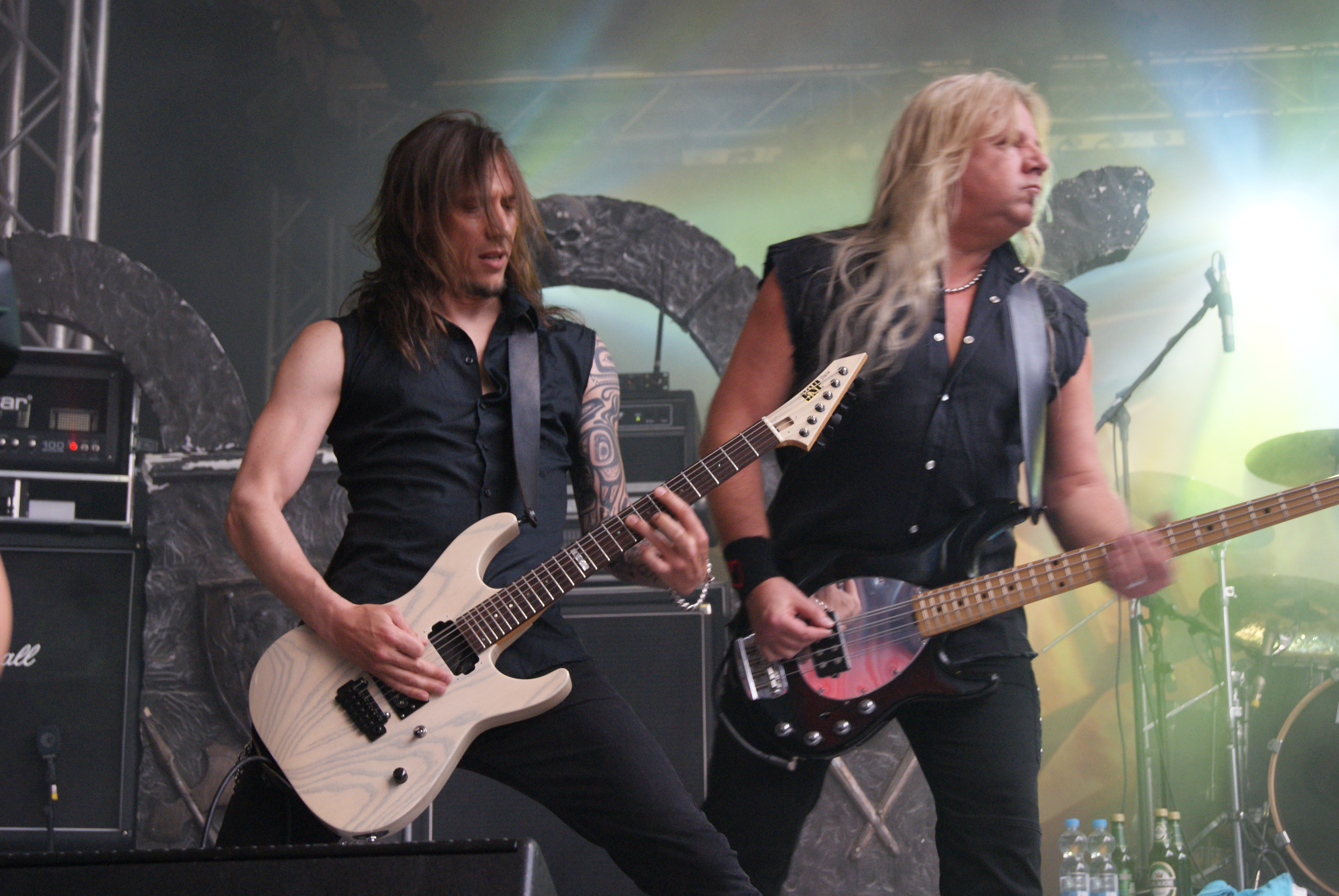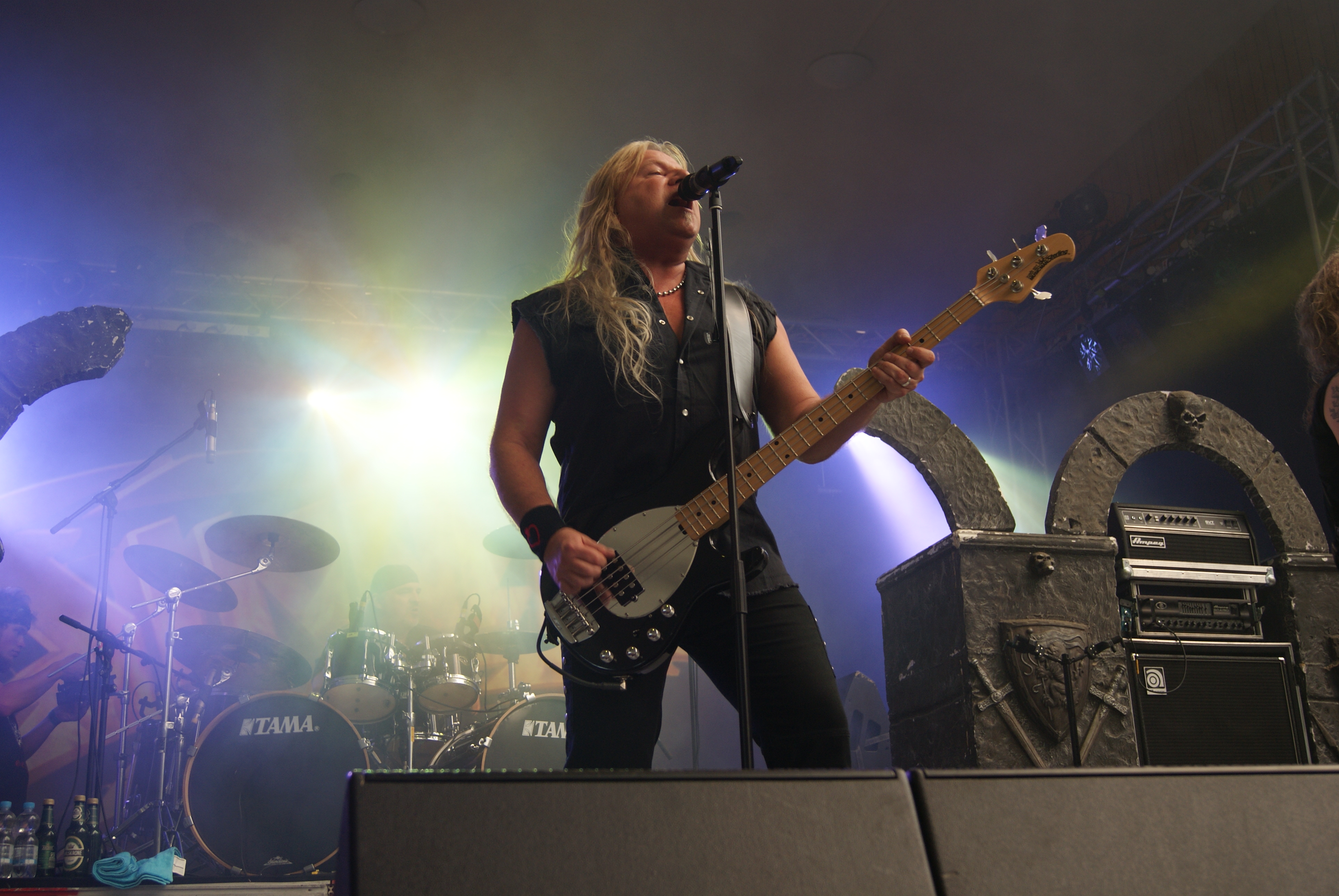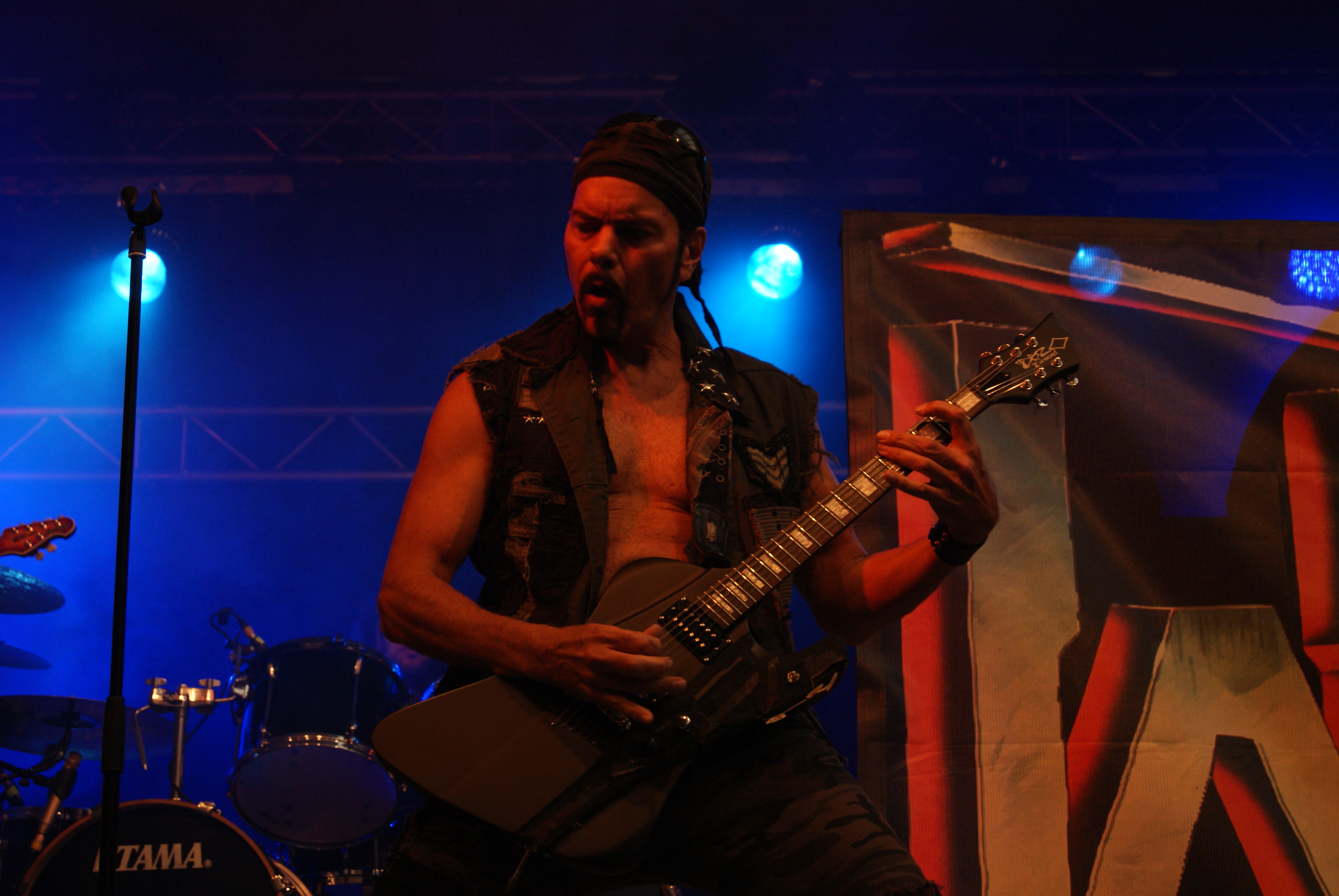 Vom letztjährigen gig auf dem Headbangers Open Ait hatte man nur gutes von PERSIAN RISK gehört. Fronter Carl Sentance hat mit "Once A King" ein starkes Album vorgelegt, für das er aber leider immer noch kein richtiges Label gefunden hat. Eigentlich traurig, das zur Zeit jede zweit- bis drittklassige NWOBHM Band mit Re-Releases bedacht wird. Nach dem Opener „Don‘t Look Back“ und „Dark Tower“ vom ersten Album gab es mit „Ridin‘ High“ den ersten Song vom aktuellen Album. Nach „Soul Deciever“ und „Spirit In My Dreams“ wurde mit „Who Am I“ ein neuer Song vorgestellt, der die Linie des „Once A King“-Albums weiterführt. Auf der Bühne war die ganze Zeit ordentlich Alarm. Carl Sentance selber war besten bei Stimme und seine Sidekicks waren ständig in Bewegung. Vor allem neu Gitarrist Jason Banks lieferte ein deutlich Metal lastigeres Riff Fundament ab als sein Vorgänger Howie G. Ein weiteres Highlight der Show war das flotte „Fists Of Fury“, gefolgt vom Titelsong der ersten LP „Rise Up“. Als Rausschmeißer dienten das unvermeidliche „Women and Rock“ und „Calling For You“, das eine echt starke Vorstellung beendete. (Holger)