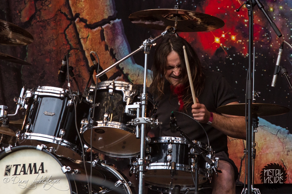 Auf der Mainstage wartete anschließend ein erster Höhepunkt des Tages auf mich: GRAVE, die brachialen Todesmetaller aus Schweden, die gar nicht lange fackelten, sondern einfach Wind, Wetter und Fans mit einer zähen Masse aus geschmolzenem Todesblei überrollten. NOCTE OBDUCTA holten sich vor ihrem Auftritt erst mal noch schnell ein paar Bierchen auf die Bühne, dann legte die Band um Sänger Thorsten Hirsch und Gitarrist Marcel Breuer los. Die Musik der Truppe ist ja alles andere als leicht verdaulich, daher war es umso schöner, dass eine große Anzahl der Festival-Besucher sich die Zeit nahm, die komplexen Kompositionen zu genießen. Es geht auch mal ohne Mosh Pit.