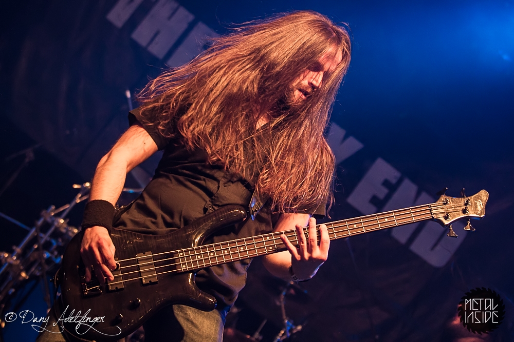 Es regnete, als die ersten Bands auf der Mainstage die spärlich vorhandenen Fans begrüßten. Ist natürlich schade, wenn man vor einem halb leeren Platz auf die Bühne muss, aber zum Ausgleich gaben sich die pudelnassen Metalheads alle Mühe, die Musiker zu bespaßen. Die wiederrum schienen extra Vollgas zu geben, wie zum Beispiel STORMWARRIOR, die Hamburger Power Metaller. Mag sein, dass sie mit der hohen Luftfeuchtigkeit besser zu Recht kommen als Bands aus dem Süden, jedenfalls gingen sie gewohnt gut gelaunt und kraftvoll ans Werk. Die Jungs hätten auf jeden Fall mehr Publikum verdient gehabt! Drinnen tobten sich anschließend THE VERY END aus, die - wie fast alle Bands übrigens - denkbar unschön ausgeleuchtet und eingenebelt wurden. Schade für die Fotografen, die euch leider keine optimalen Fotos der Bands aus der Halle präsentieren können. Den Fans schien es egal zu sein, die waren vielleicht auch nur froh, im Trockenen zu sein.