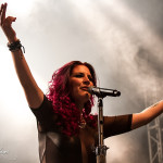 Hallen-Headliner des ersten Tages waren DELAIN, von denen nicht viel zu sehen war, da die Bühne unverständlicherweise mit Nebel zugebombt wurde. Akustisch war dagegen alles in Ordnung, der Sound ähnlich gut wie bei HATE, so dass man die einzelnen Songs gut erkennen konnte. Das war nicht immer der Fall. Dass DELAIN rocken können wie die ganz Großen, stellten die Niederländer auch beim Out & Loud wieder unter Beweis, ein guter Teil der Eventhallen-Besucher war am Mithüpfen und Mitsingen. Wer sich nicht schon für POWERWOLF die besten Plätze vor der Mainstage gesichert hatte, war nach DELAIN also ideal aufgewärmt und in Stimmung für den Headliner des ersten Tages. POWERWOLF hatten zur Feier ihres 10-jährigen Jubiläums einiges mitgebracht: Ein tolles Best of ihrer alten und neuen Songs, Bomben-Sound, ansteckende Spielfreude und eine beachtliche Pyro-Show. Klar, POWERWOLF waren der eindeutige Höhepunkt des ersten Tages und demonstrierten, dass ihr Aufstieg zu einer der größten deutschen Metal-Bands zu Recht so schnell ging. Die Jungs sind einfach klasse und wurden entsprechend begeistert gefeiert. Bäm! Zeit für die Heimfahrt, auf der mich die POWERWOLF-Songs begleiteten…