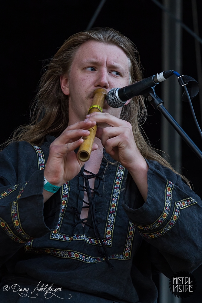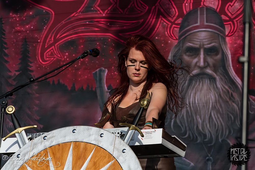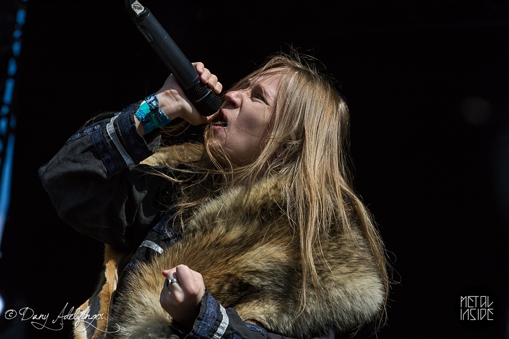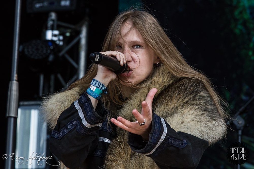 Für Festivals sind die Russen von ARKONA bestens geeignet, denn ihre eingängigen, ebenso melodischen wie harten Songs und die Bühnenpräsenz von Masha kommen einfach gut an, auch wenn das Publikum die Truppe noch nicht kennt. Masha wirkt alles andere als gekünstelt, eher wie ein wildes Tier, was ja auch zum Wolfsfell passt, dass sie sich wie immer trotz strahlendem Sonnenschein über die Schultern gehängt hatte. Ganz im Gegensatz dazu dann ARVEN, die in der Eventhalle stocksteif agierten und mich komplett kalt ließen. Ich mag Symphonic Metal, aber bei ARVEN stimmte für mich gar nichts: Lustlos präsentierte Songs, matschiger Sound, mieses Licht und ein Stageacting, für dass sich die Marionetten der Augsburger Puppenkiste geschämt hätten.