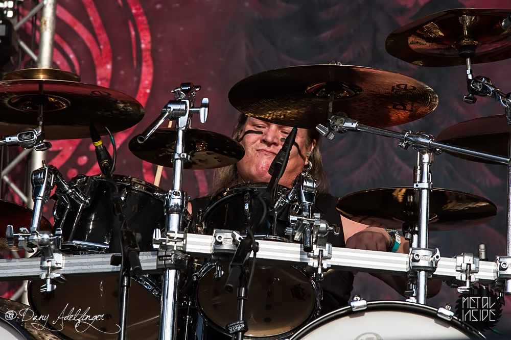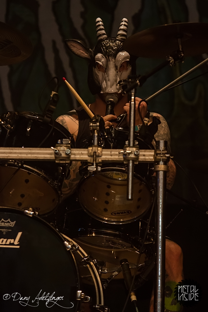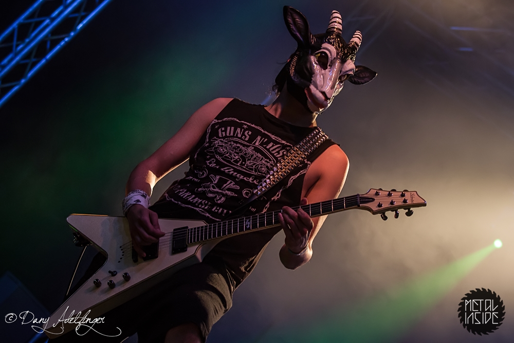 Der dritte Tag begann für mich etwas später, erst zu MAJESTY war ich am Start. Nicht, dass die Bands davor uninteressant gewesen wären, aber man hat ja auch noch andere Dinge zu tun. MAJESTY jedenfalls konnten bei bestem Festival-Wetter loslegen und mit ihrer ansteckend guten Laune nicht nur ihre Die Hard-Fans begeisterten (die schon Minuten vor Show-Beginn „Hail, hail, to Majesty!“ skandierten), sondern auch das restliche Publikum ansteckten. Weiter mit MILKING THE GOAT MACHINE, die sich in der Eventhalle austobten. Die Ziegenmenschen, die auf Männer und Frauen starrten, sorgten mit ihren Grindcore-Cover für Spaß und das eine oder andere breite Grinsen im Publikum.