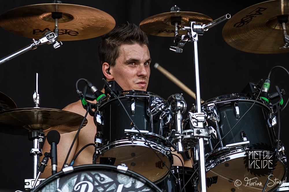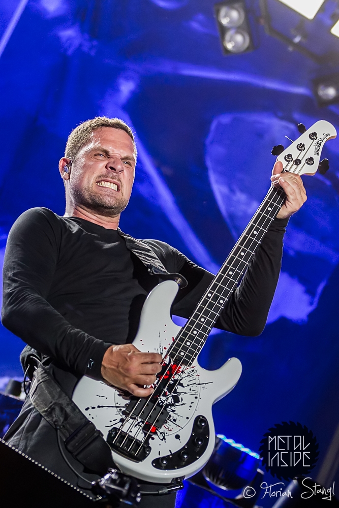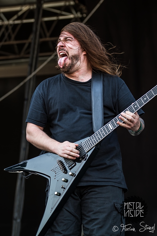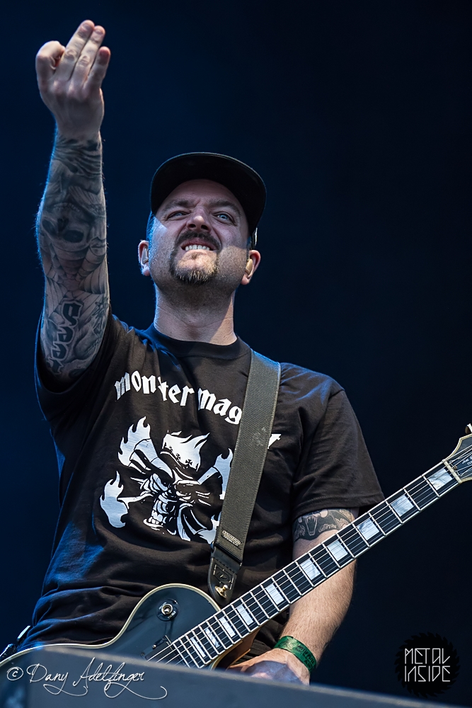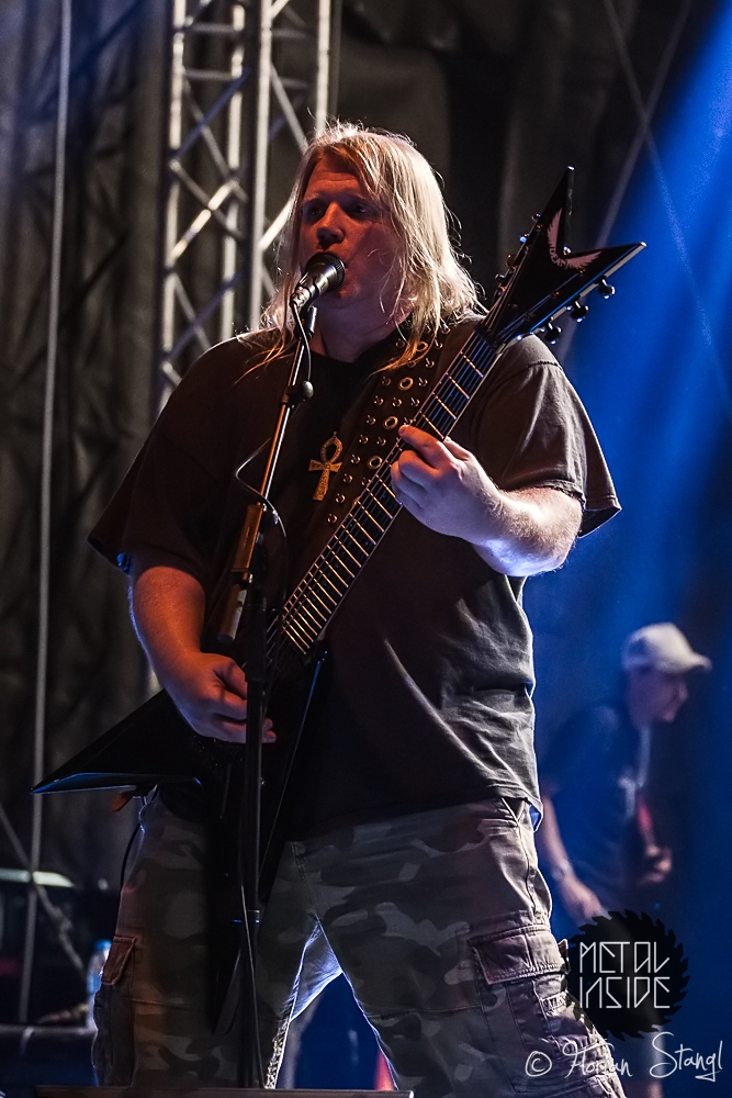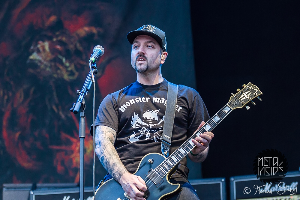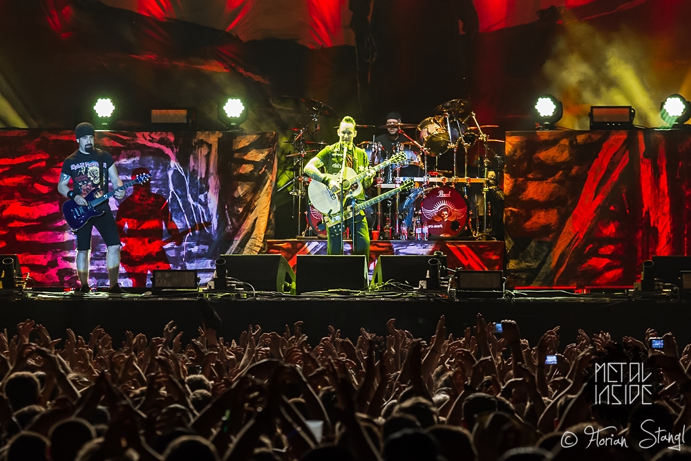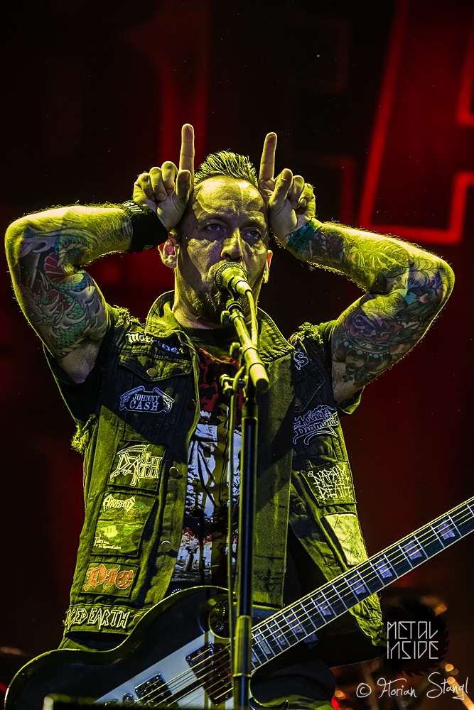 Zeit für den Headliner von Tag 1, VOLBEAT. Die dänische Truppe konnte es sich natürlich nicht verkneifen, das Publikum mit Hinweisen auf das Fußballergebnis zu motivieren, außerdem dankte man den deutschen Fans dafür, dass sie die fleißigsten Käufer von VOLBEAT-Scheiben seien. Musikalisch gab es alte und neue Hits, eine JOHNNY CASH-Einlage und natürlich Böller, Feuer und ein Abschlussfeuerwerk. Das leitete direkt zum Beginn der Knüppelnacht mit NILE über, die mit gutem Sound, aber wenig Licht für einen tollen Auftakt sorgten.