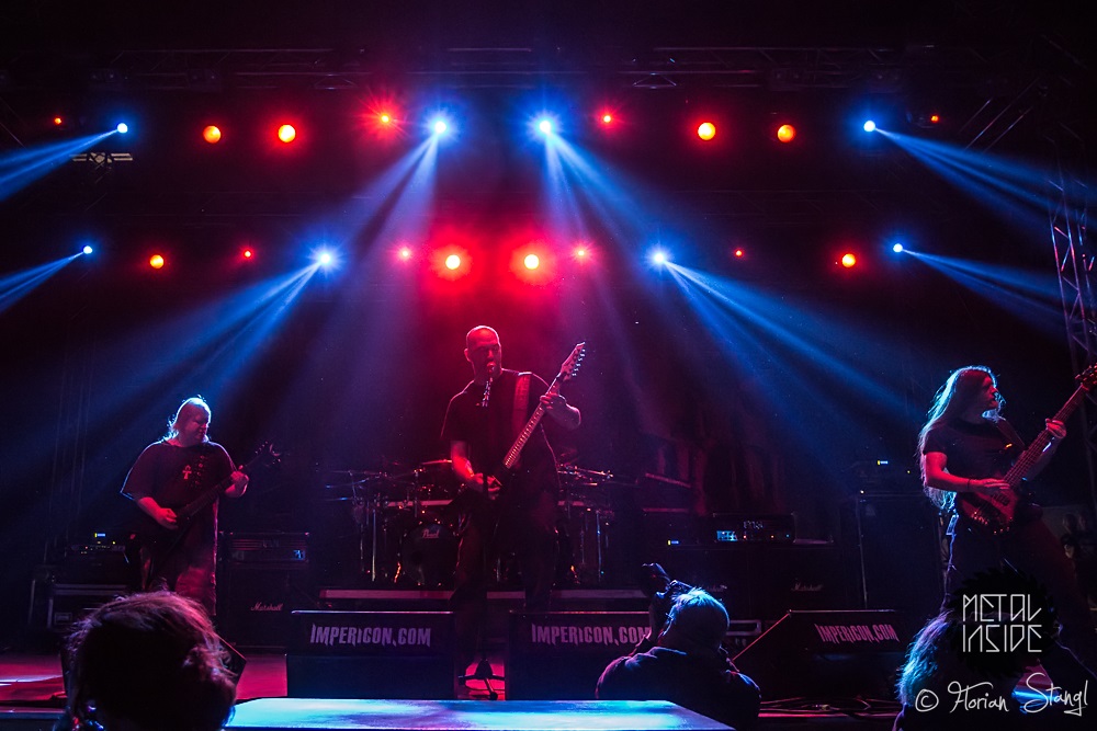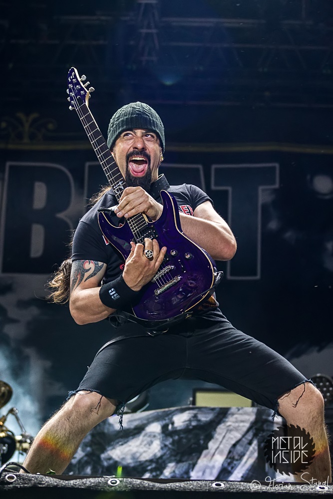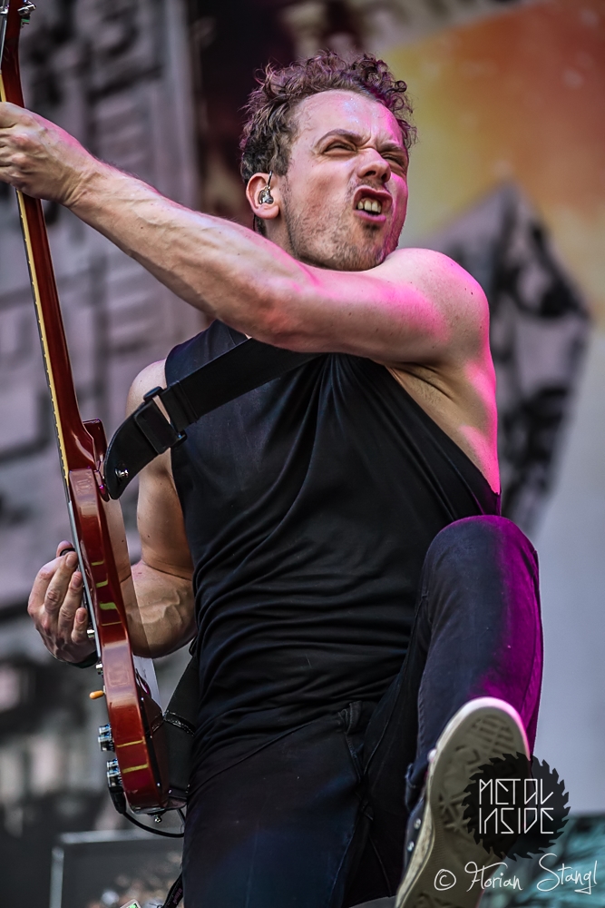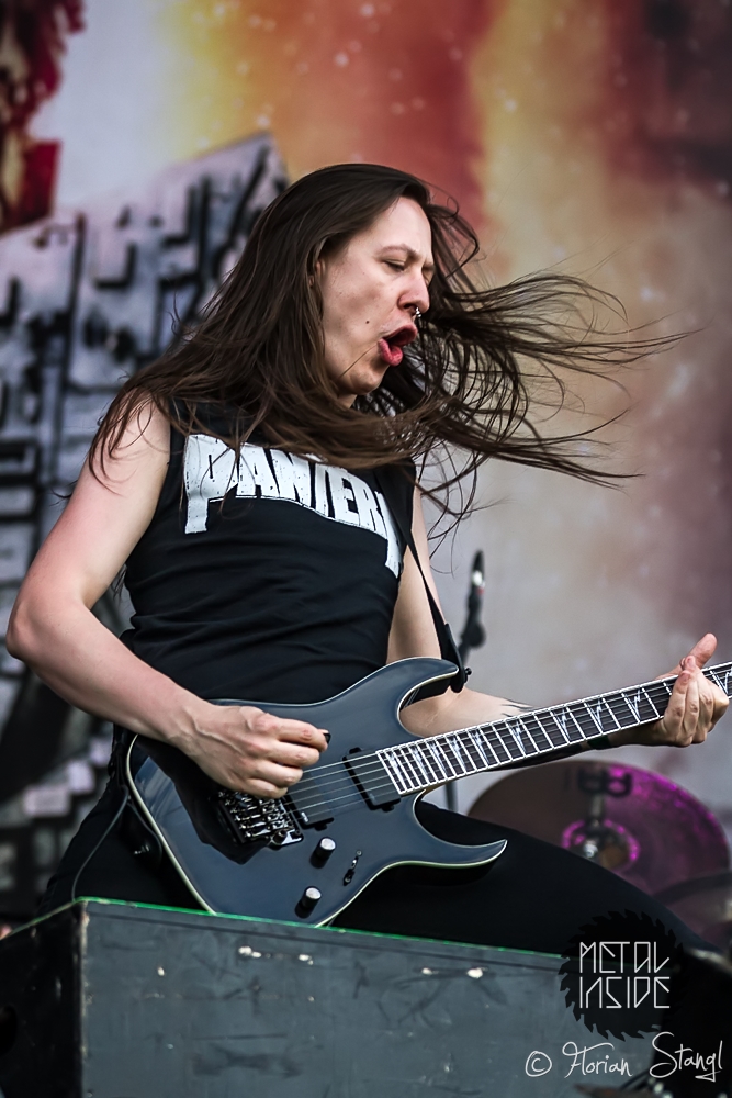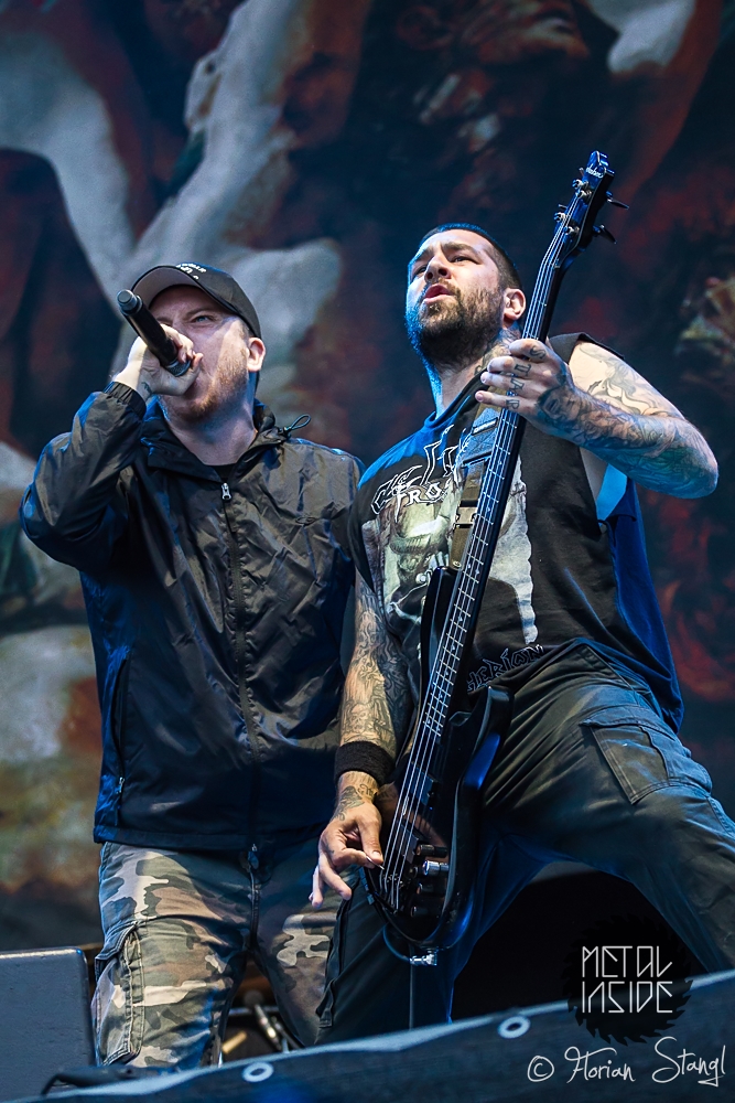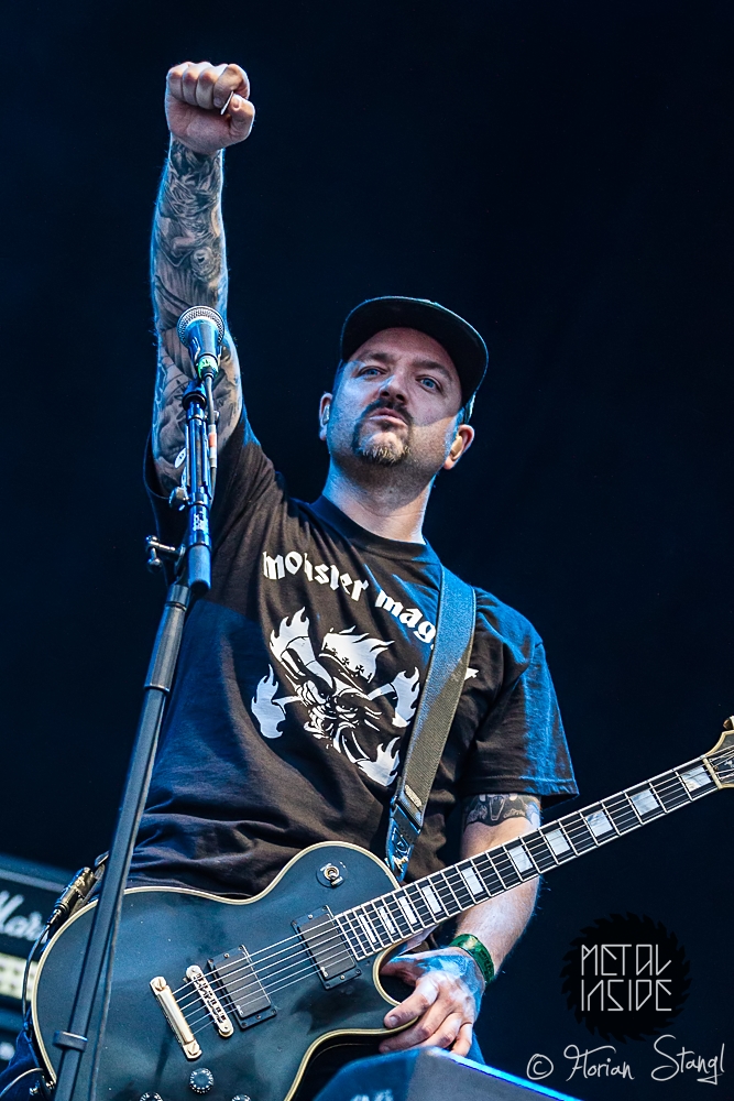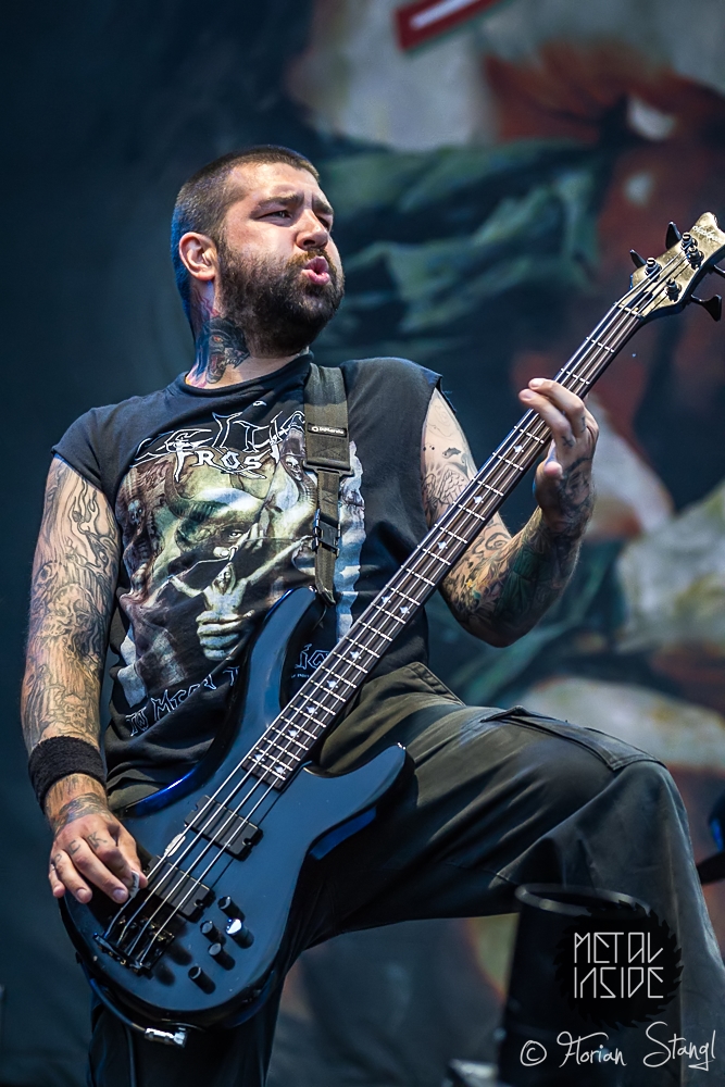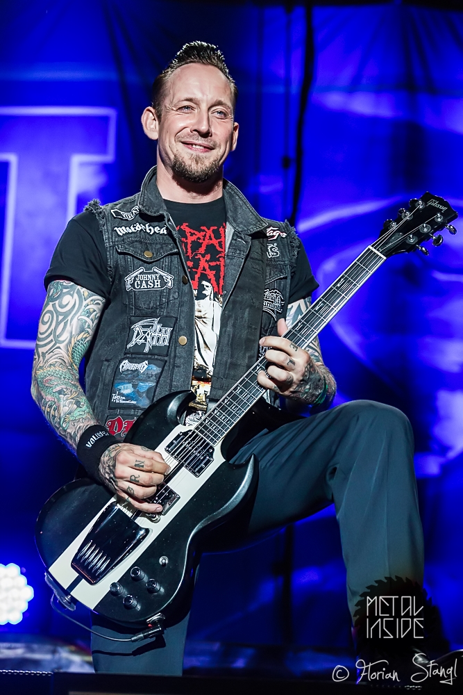Zeit für den Headliner von Tag 1, VOLBEAT. Die dänische Truppe konnte es sich natürlich nicht verkneifen, das Publikum mit Hinweisen auf das Fußballergebnis zu motivieren, außerdem dankte man den deutschen Fans dafür, dass sie die fleißigsten Käufer von VOLBEAT-Scheiben seien. Musikalisch gab es alte und neue Hits, eine JOHNNY CASH-Einlage und natürlich Böller, Feuer und ein Abschlussfeuerwerk. Das leitete direkt zum Beginn der Knüppelnacht mit NILE über, die mit gutem Sound, aber wenig Licht für einen tollen Auftakt sorgten.