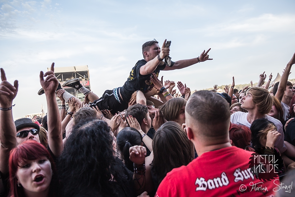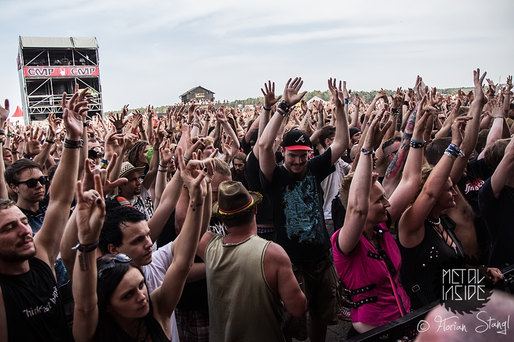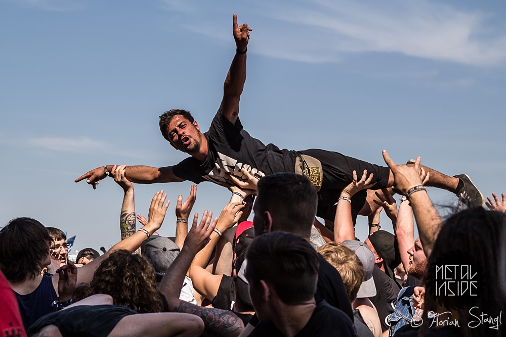 Die Bands selber ließen sich nicht lumpen und gaben trotz der Hitze Vollgas, so etwa THE BLACK DAHLIA MURDER, deren Sänger Trevor angesichts der tobenden Meute vor der Bühne die Szenerie immer wieder mit einem beeindruckten "Beautiful!" kommentierte. Auch Maurizio von KATAKLYSM hatte seinen Spaß mit den deutschen Fans, die er immer wieder anheizte, noch lauter zu werden und noch mehr Leute in den Circle Pit zu holen.
