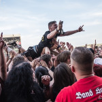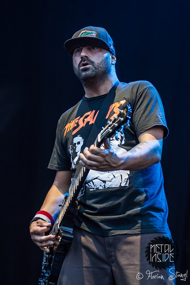 Das passte zum Spiel Deutschland gegen Frankreich, bei dem es ja schnell das einzige Tor des Spiels zu feiern gab. Nach kollektivem Zittern bis zum erlösenden Schlusspfiff war der Jubel riesig, so dass die kurz danach spielenden CALLEJON einfach auf der Welle der Begeisterung reiten konnten. HATEBREED bekundeteten im Anschluss gleich mehrmals, wie toll sie das With Full Force Festival finden, es sei eines der besten, wenn nicht gar das Beste Festival. Diese Liebe ist nicht einseitig, denn die Fans brüllten textsicher alle Songs mit und dürften somit dem Wunsch von Jamey nachgekommen sein, am nächsten Morgen die gleiche Stimme zu haben wie er...