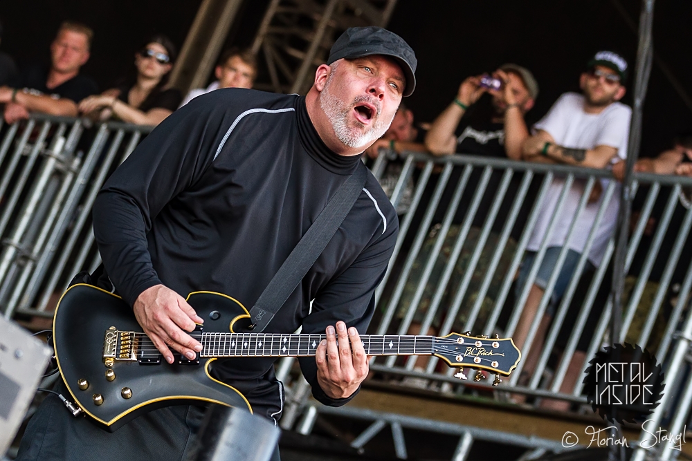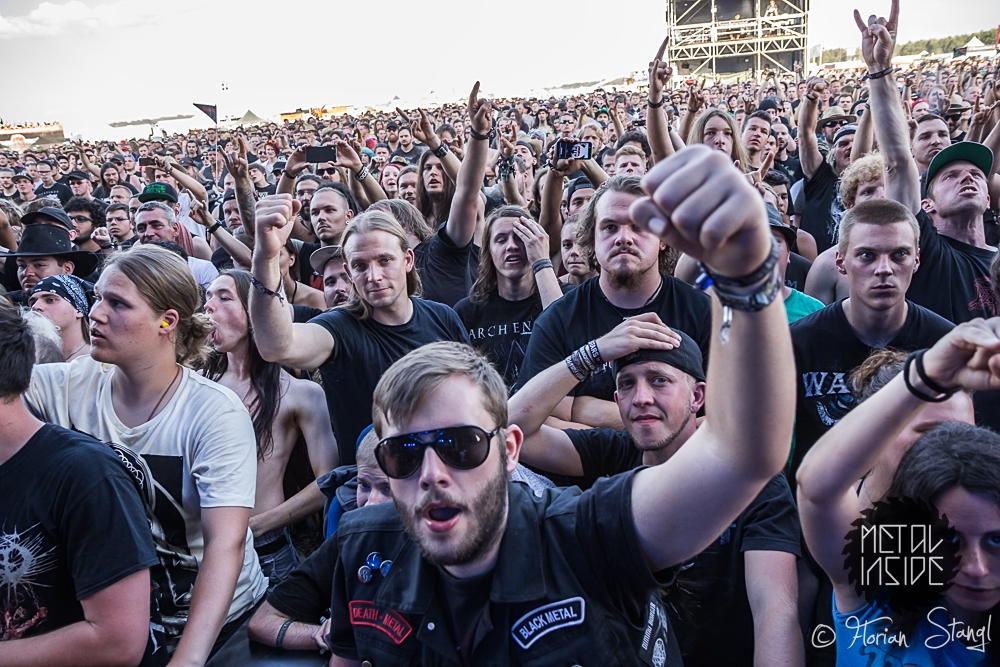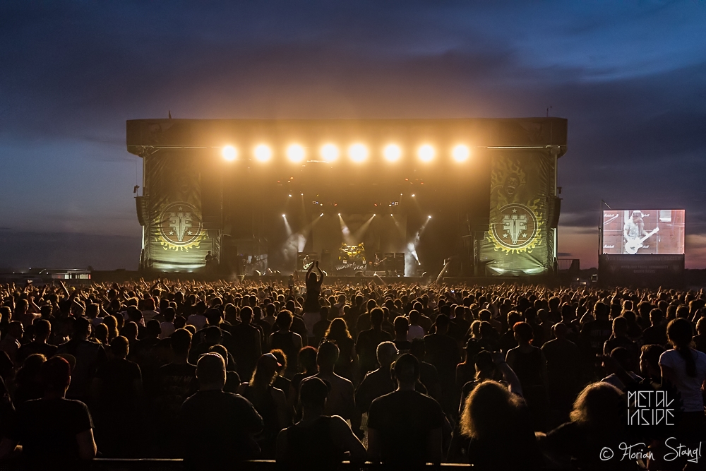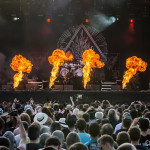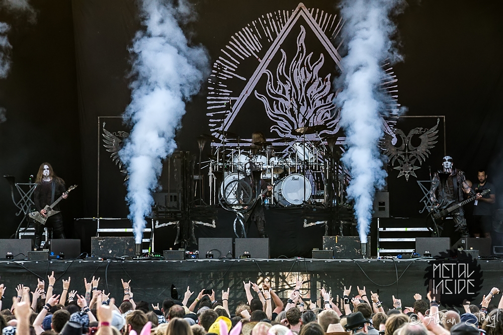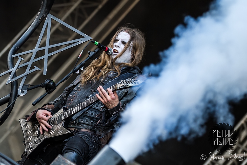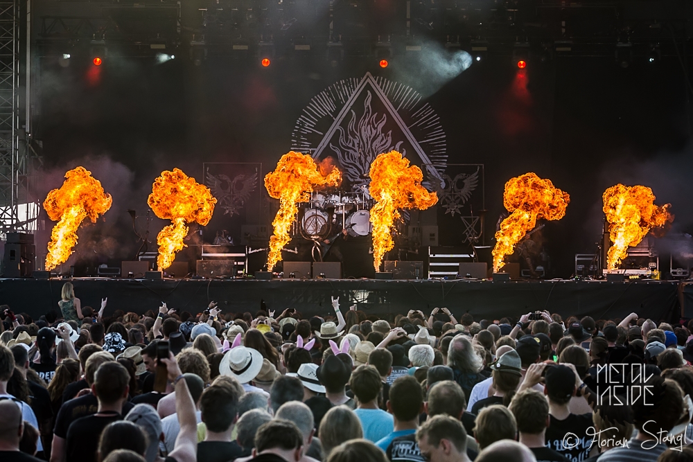 Eine Band wie BEHEMOTH braucht doch Dunkelheit um zu wirken und keinen Slot an einem seinem Namen gerecht werdenden sonnigen und zudem heißen Sonntag um 19.05! Weit gefehlt! Natürlich gingen die Feuerzeremonien im Tageslicht etwas unter, die dicke Lightshow wurde gar nicht erst abgefahren, aber dennoch kreierten die Polen eine eindrucksvolle Stimmung. Lediglich ein kleiner Teil des Publikums wusste wohl nicht so ganz, wo es die Düstermänner verorten sollte. Den Rest hatten Nergal und die Seinen ganz schnell und fest in ihren Bann gezogen. Natürlich sind sie pathetisch und showtechnisch sehr auf den Unterhaltungsaspekt fokussiert, ihre Musik jedoch kommt nach wie vor grundehrlich und bitter böse daher. So viel Kraft, Schnelligkeit und Präzision mit Brutalität und Atmosphäre zu verbinden gelingt nur ganz wenigen Bands auf so hohem Niveau. Da darf dann auch mal Blut fließen und sie können schwarzes Konfetti regnen lassen. Wobei mit Lichteffekten, mehr Feuer … so im Dunkeln … ist es vielleicht doch noch ein kleines bisschen eindrucksvoller! (jq)