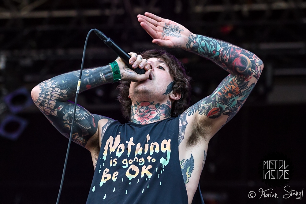 BRING ME THE HORIZON waren im Anschluss nicht unbedingt besser als BEHEMOTH, aber sie passten einfach besser zur Mehrheit der WFF-Besucher und räumten gnadenlos ab. Nicht nur direkt vor der Bühne ging die Party ab, sondern bis weiter hinters FOH herrschte Ausnahmezustand. Dass kurz nach dem Auftritt das Festivalgelände in eine dichte Staubwolke gehüllt war, dürfte dem kollektiven Hüpfen zehntausender Fans zu verdanken gewesen sein.