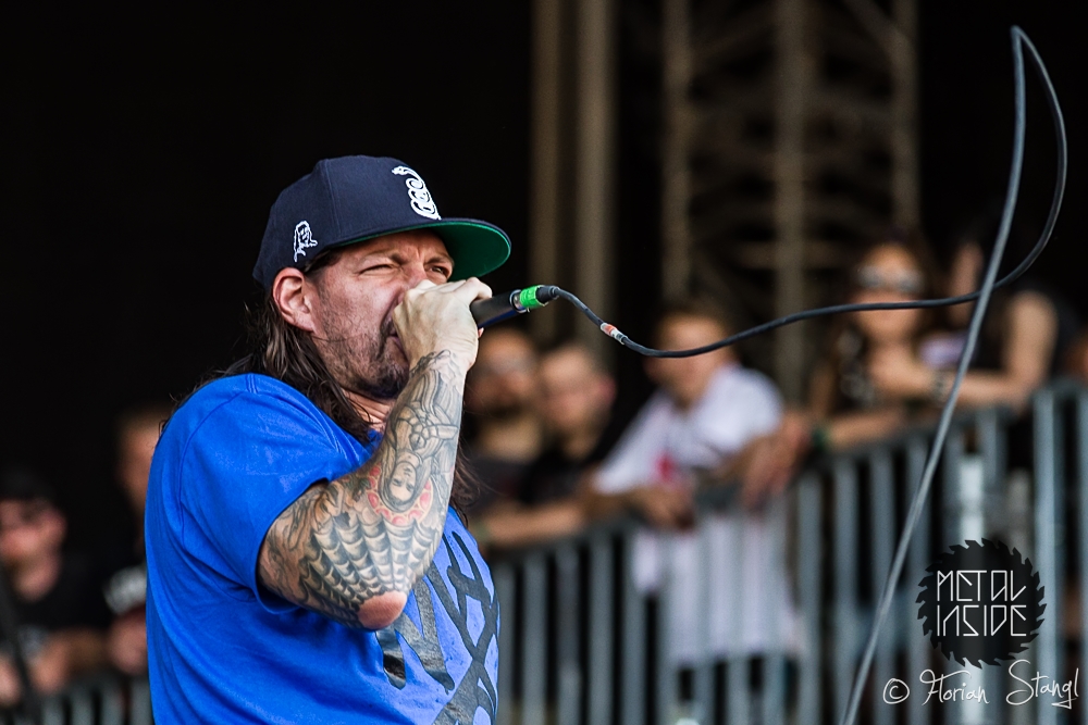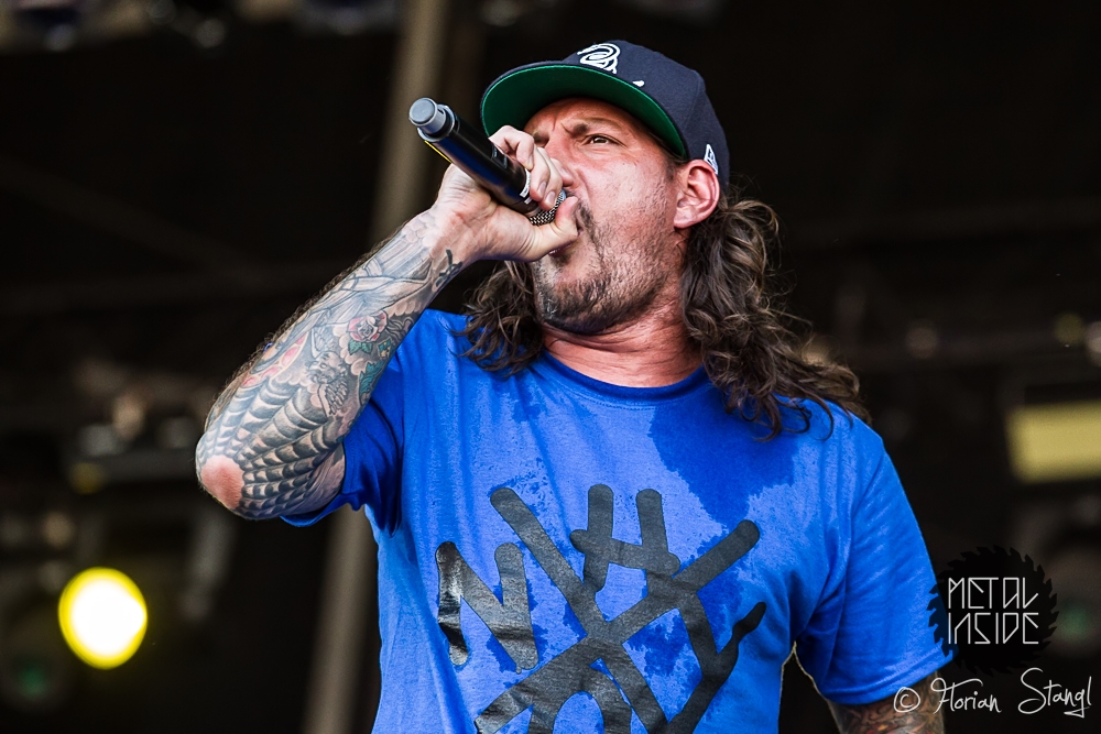 Die Hardcore-Rabauken von MADBALL schien die Hitze nicht zu stören, insbesondere Freddy Ciricien tobte wie von der Tarantel gestochen über die Bühne und setzte ganz klar voraus, dass die müde Meute vor der Bühne es ihm nachtat. Seine Appelle fruchteten nach und nach, aber dass das WFF nicht komplett in einen einzigen Circle Pit mutierte, lag eben an der Hitze, nicht an MADBALL.