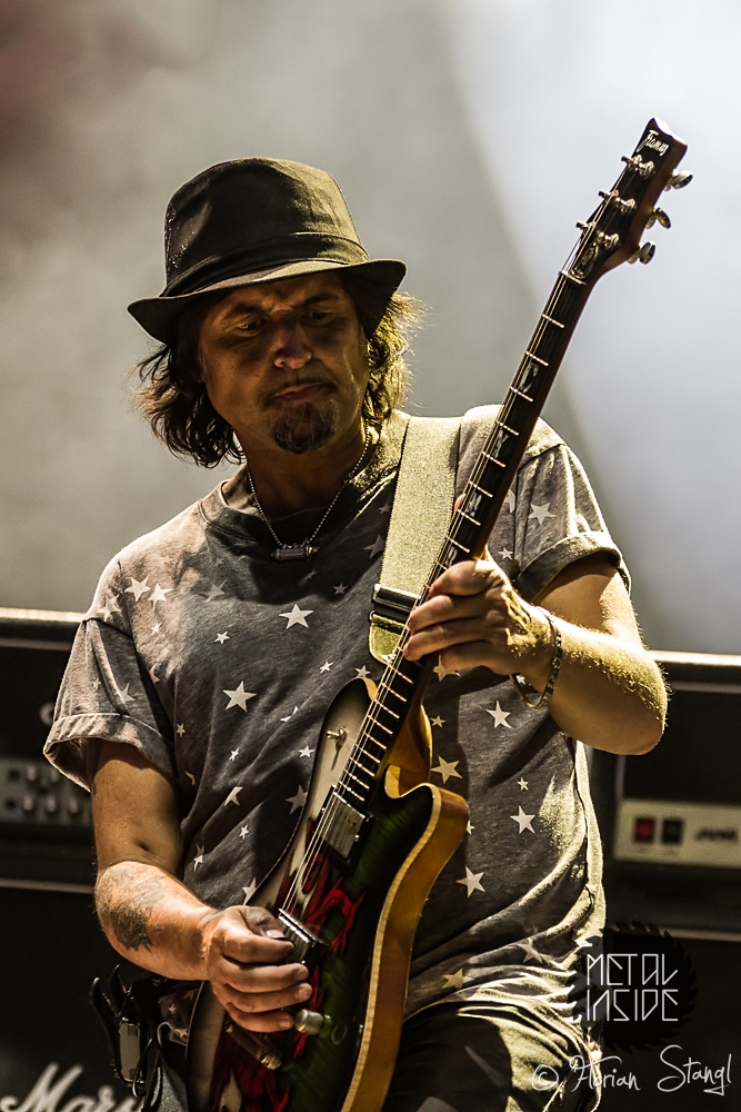 Was war denn mit SEPULTURA geschehen? Behäbig, fast schwerfällig und dadurch sehr langsam zockten sich die Thrash-/Death-Urgesteine durch ihr Set. Am frischesten kam da bei „Orgasmatron“ noch Gast-Gitarrist Phil Campbell herüber. Im Programmheft noch als hungrig und sich stets wieder erfindend beschrieben (gut, wäre auch taktisch unklug, einen der Headliner im Begleitheft als langsam abbauend zu deklarieren), wiesen sie so gar nichts vom bekannten Druck oder der Wut ihrer Songs auf und ließen den Auftritt eher wie eine Pflichtveranstaltung zum Einkommenserhalt über die Bühne plätschern. Sehr schade. (jq)