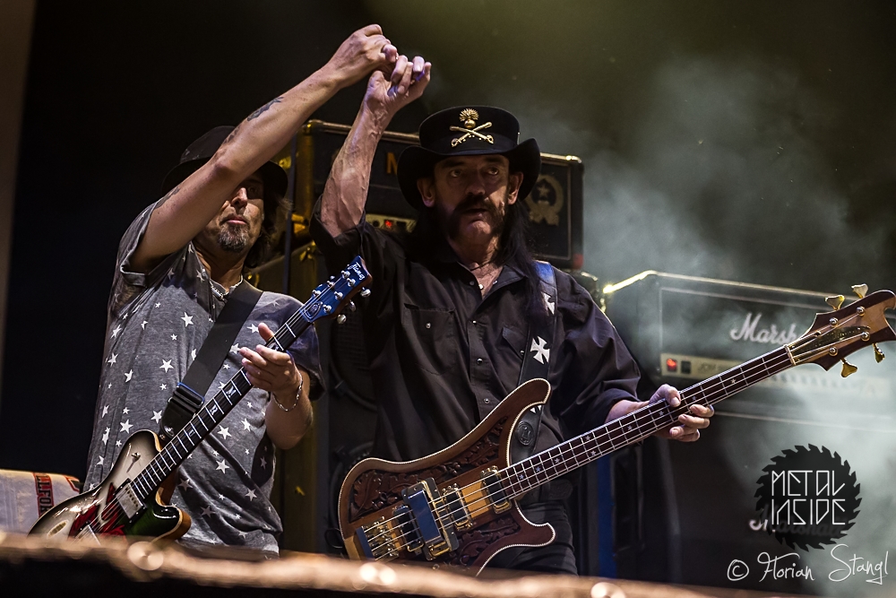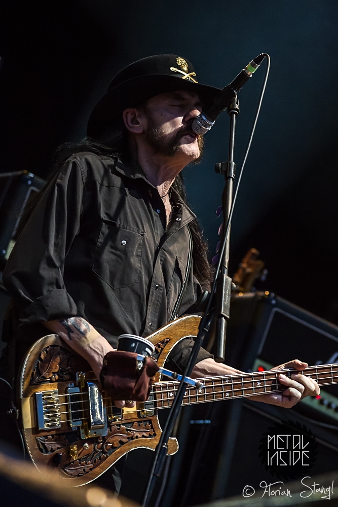 Was hat sich der Musikzirkus nicht gefürchtet im vergangenen Jahr. Sollte Lemmy Kilmister tatsächlich langsam dem Rentnerdasein nahe kommen? Sollte sein auf unverständliche Weise immer noch lebendiger Körper und das darin schlagende Herz langsam aber sicher den Dekaden der gezielten Destruktion (manche nennen es auch Rock'n'Roll-Lebensstil) Tribut zollen. Es sah ganz danach aus. Konzerte abgesagt, Touren verschoben, um sie dann doch ganz zu canceln, Auftritte abgebrochen – das alles ließ auf nichts Gutes hoffen. Den bangen Blick zur Leinwand mit eventuellen Änderungen konnten viele Besucher nach dem vergangenen Jahr nicht einfach abschalten. Doch MOTÖRHEAD spielten – und wie! Also eigentlich wie immer, nur dass Lemmy nun eine Frischluftzufuhr unter den Mikroständer gebastelt bekam und Gitarrist Phil Campbell wie ein saitenbearbeitender Krankenpfleger immer wieder den Kontakt zu seinem Bandchef suchte. Es kann auch nicht verschwiegen werden, dass die vergangenen 1 ½ Jahre und die unterschiedlichen Erkrankungen nicht spurlos an Lemmy vorbei gegangen sind, seine Wangen waren eingefallen, der Blick schien ziemlich leer. Die Stimme und sein Bassspiel hat er sich aber erhalten. Ich wage es nicht, einen Abgesang auf ihn und damit auf MOTÖRHEAD zu schreiben. Ich glaube jedoch, es wäre für ihn gesünder, würde er das Touren sein lassen, vielleicht ein, zwei Festivals im Jahr zocken, Alben herausbringen. Doch er schien eine Schuldigkeit gegenüber den Fans zu empfinden, die er im vergangenen Jahr womöglich enttäuscht hatte. Hat er sicher nicht, nur in Sorge versetzt. Ich wünsche ihm, dass er sich mit dem Gefühl der getanen Schuldigkeit in seinen wohlverdienten Unruhestand verabschieden kann. Ob er das tun wird – nein, wohl eher auf der Bühne sterben, wäre sicher seine Antwort. (jq)