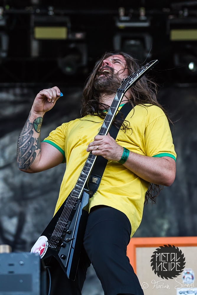 Die polnischen Black Metal-Giganten BEHEMOTH hatten dann auf der Mainstage mit der Hitze, dem Tageslicht und dem eher Metalcore-affinen Publikum zu kämpfen. An der Show der Truppe um den charismatischen Frontmann Nergal lag es sicher nicht, die legte sich mächtig ins Zeug. Sehr zur Freude ihrer echten Fans, die sich in der Mitte vor der Bühne versammelten und die intensive Show mit vielen Feuereffekten genossen. Dass sich weiter hinten die Zuschauer eher mit sich oder den Fressbuden beschäftigten, war auffallend, aber zu verschmerzen. BEHEMOTH haben jedenfalls wieder restlos überzeugt, auch wenn ihr Sound nicht optimal war.