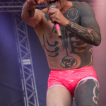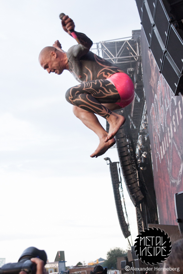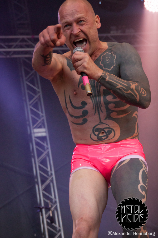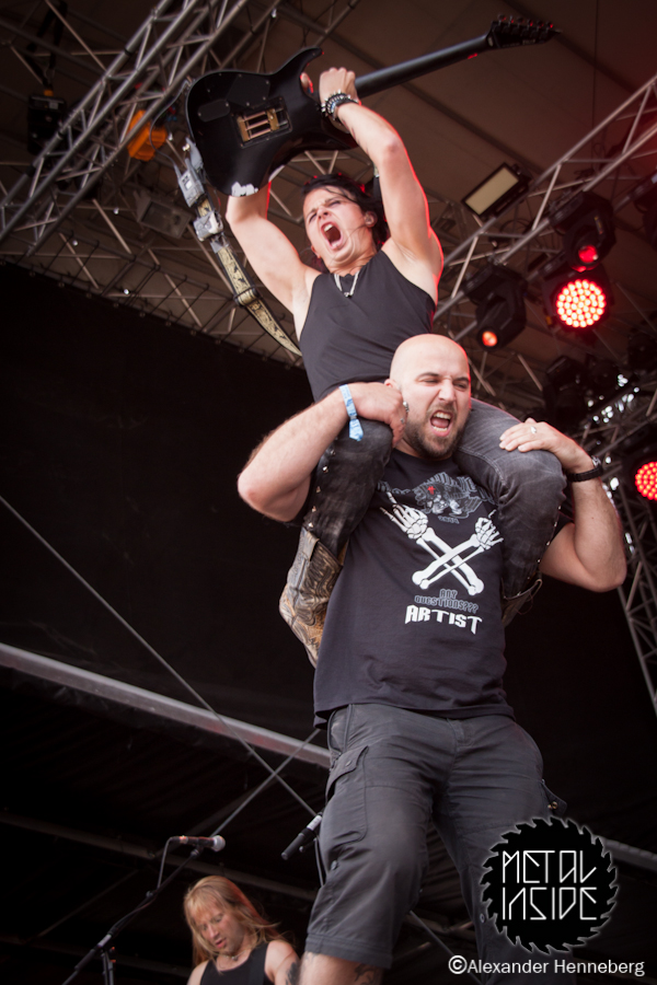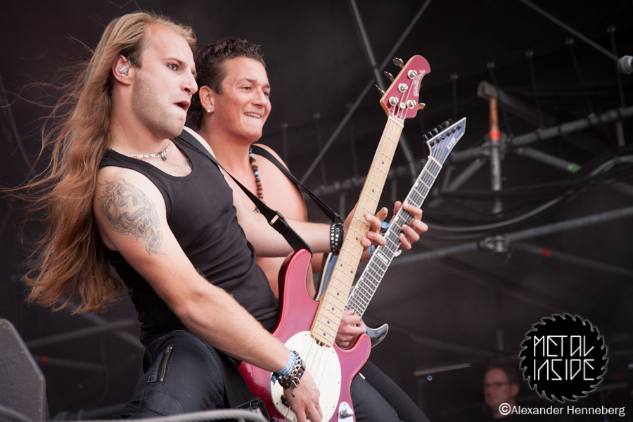 Die wohl abgedrehteste Band auf dem ganzen Festival war wohl KISSIN‘ DYNAMITE, doch ob ich das jetzt positiv oder negativ meine, da bin ich mir noch nicht ganz sicher. Auf der Bühne erwarteten die Zuschauer ein paar braungebrannte, halb nackte Burschen wo auf dem ersten Blick keiner von ihnen schon allzu lange aus der Pubertät raus zu sein. Kombiniert wurde das hier und dort mit deutlich zu viel Eyeliner und irgendwie auch mit einem großen bisschen Metrosexualität. Nichts desto trotz haben sie gut gerockt und waren energiegeladen und wussten wie man die Leute unterhält. (alh)