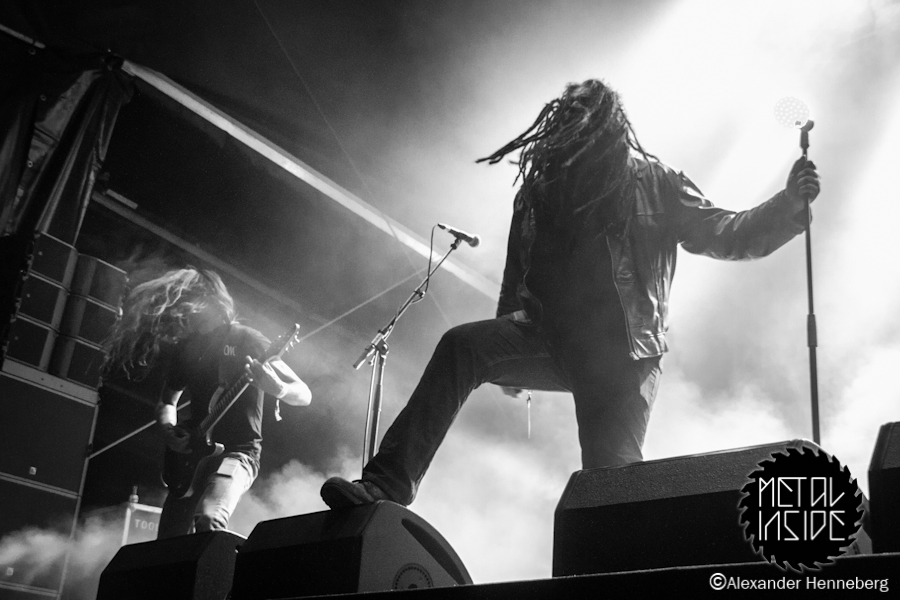UNLEASHED machen Death Metal – verdammt fetten, bösen, knurrigen Death Metal mit Pagan-Einschlag. Und exakt das haben sie gemacht – im frühen Abendprogramm wurde verkündet, dass sie niemals kapitulieren werden („Wir Kapitulieren Niemals!“) und das man mit Death Metal Siege erzielen wird („Death Metal Victory“) – die Menge dankte es mit Headbangen.