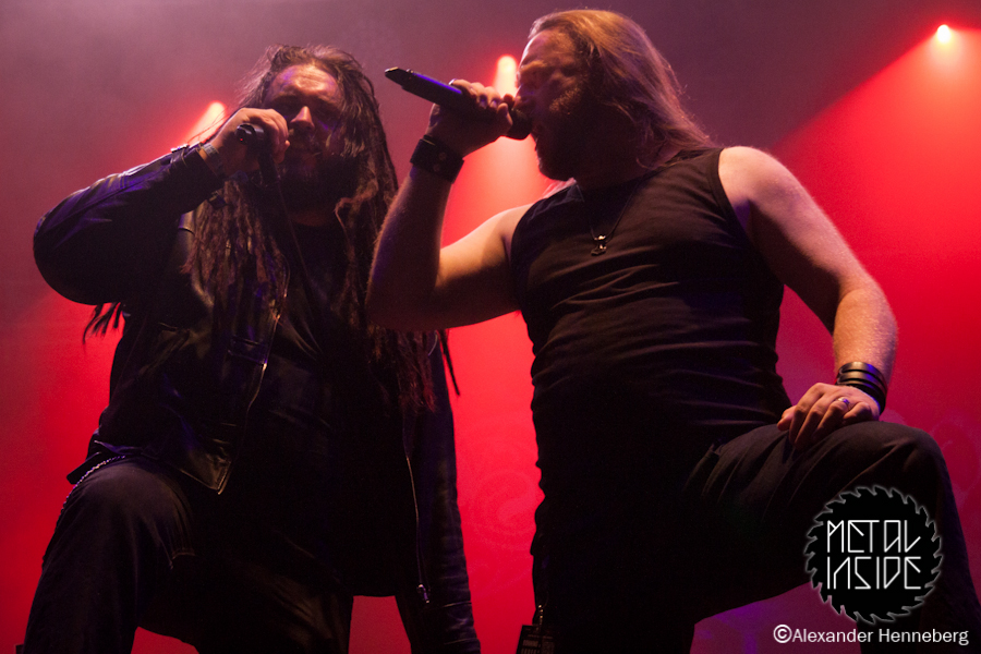 Kraftvolle Gesänge von den beiden Männerstimmen, die in Niederländisch über germanische Stämme und Mythen sagen und dabei von zwei ordentlich abgemischten Gitarren, einem Bass und natürlich von Drums begleitet wurden. In ihren Ansprachen wechselten sie oft zwischen Englisch und einer gebrochenen Deutschform.
