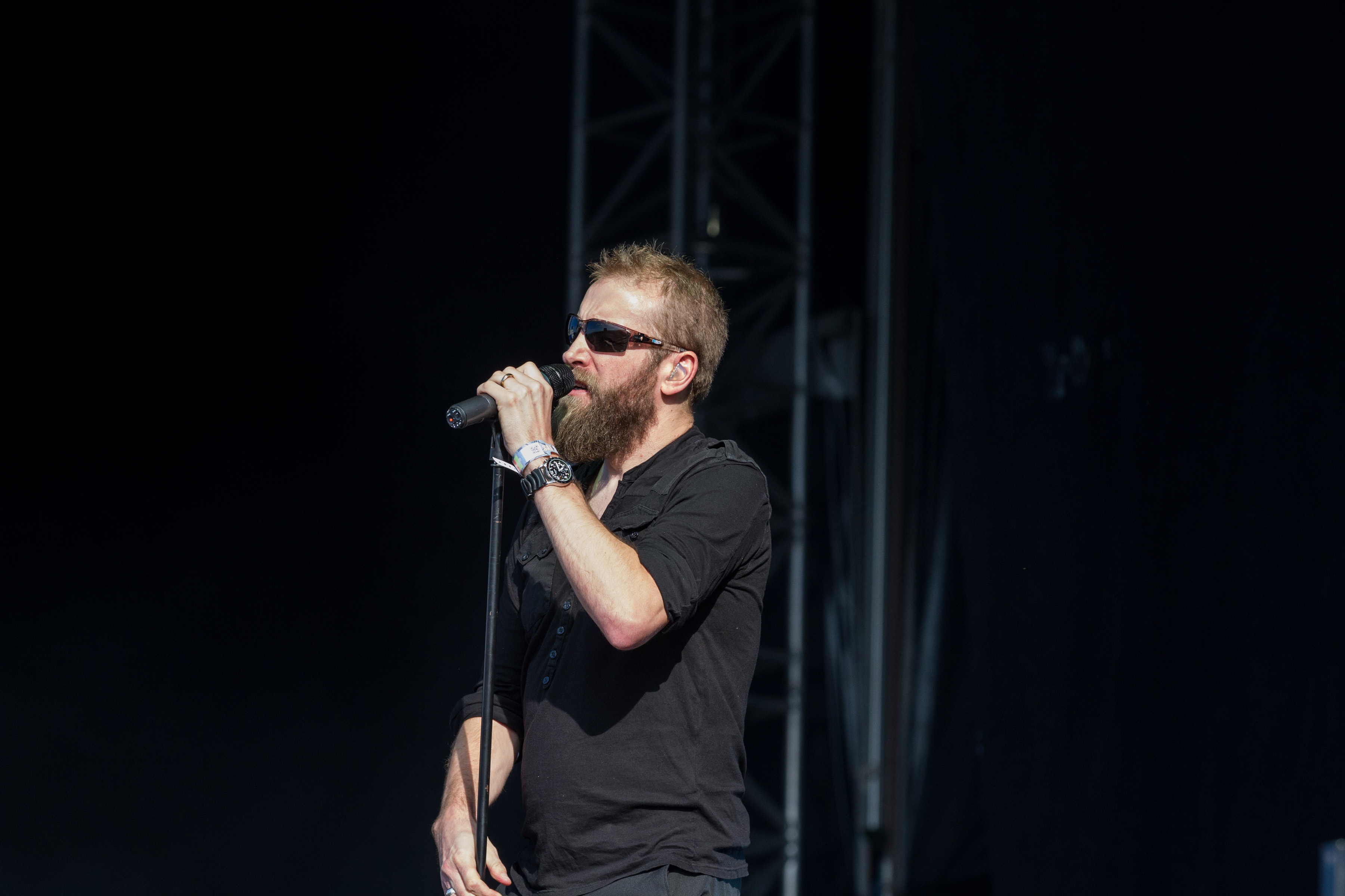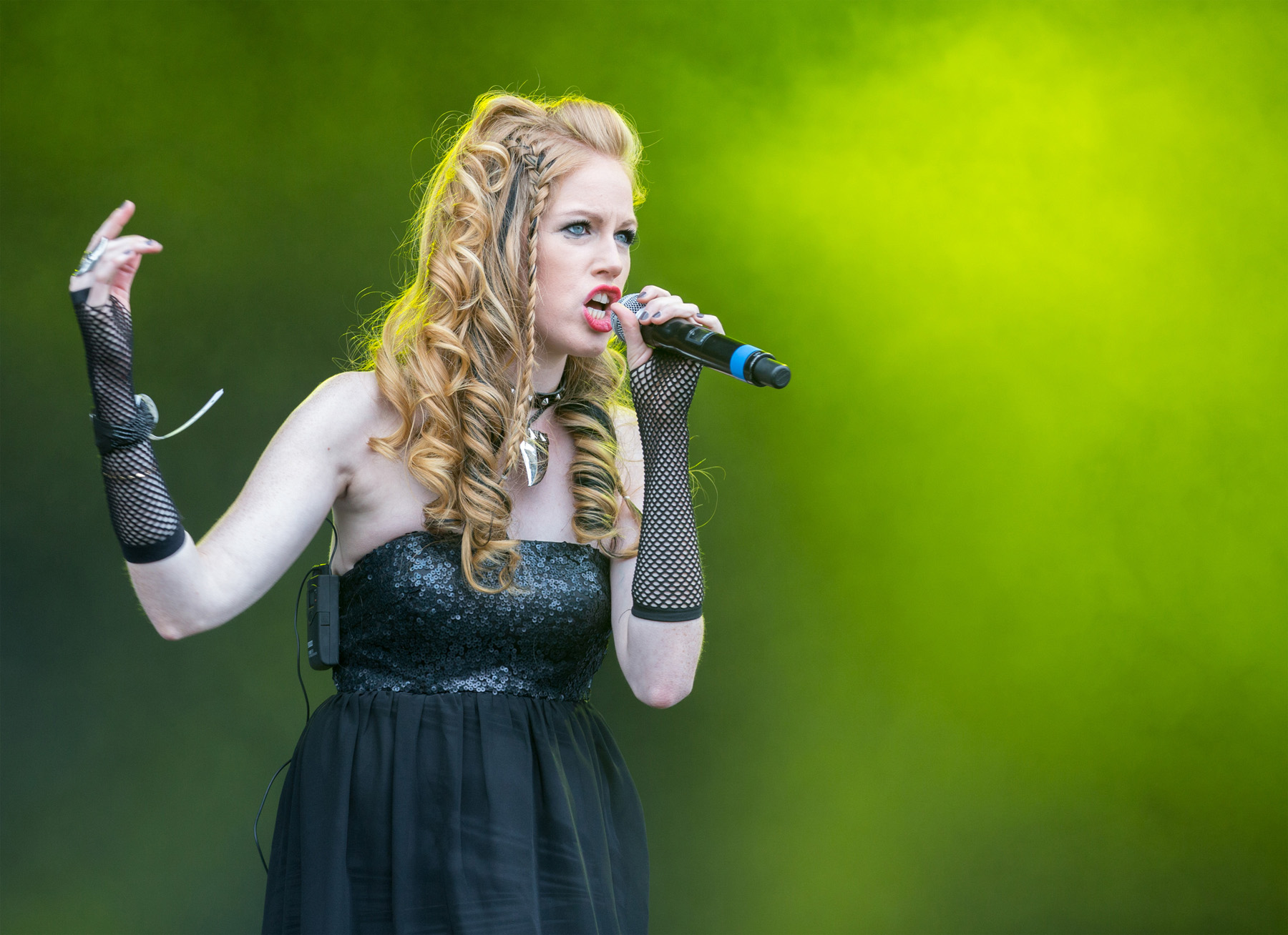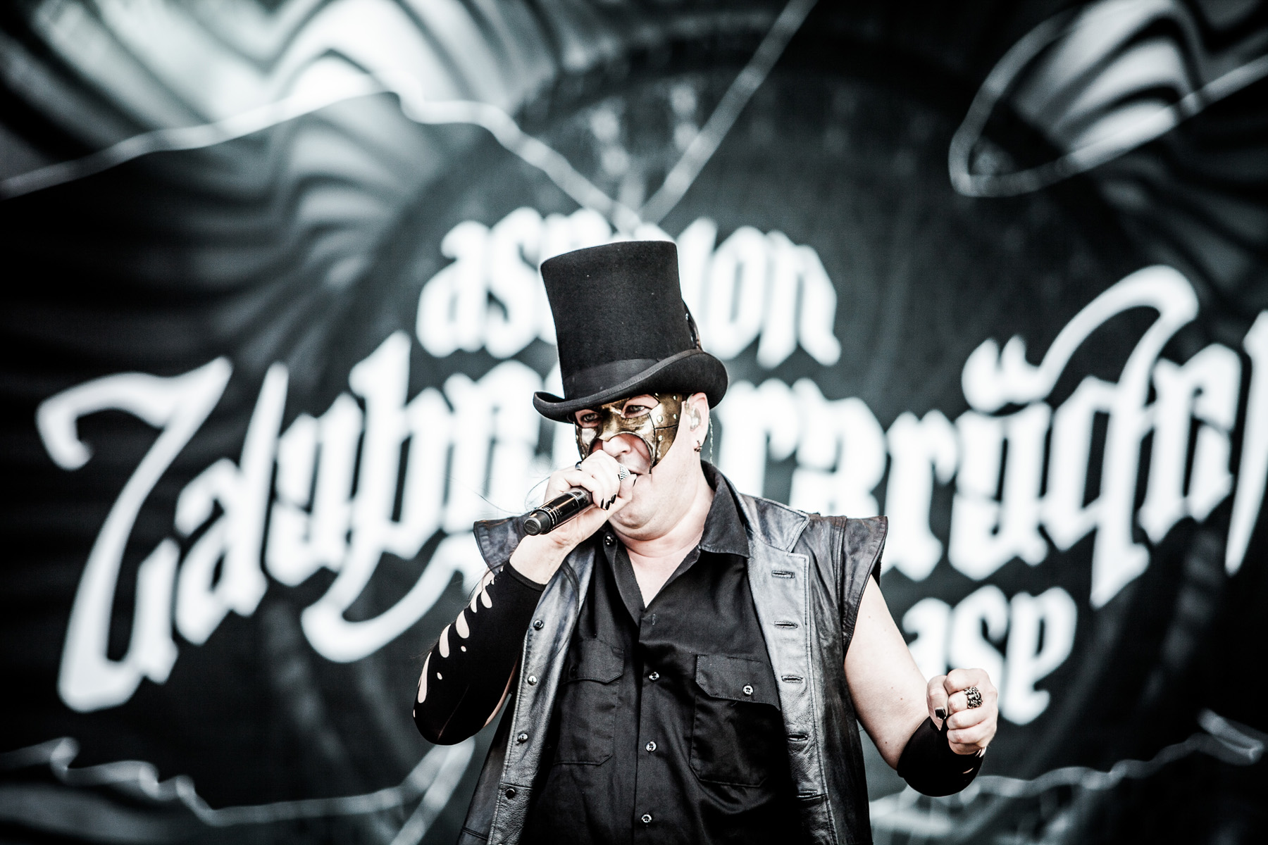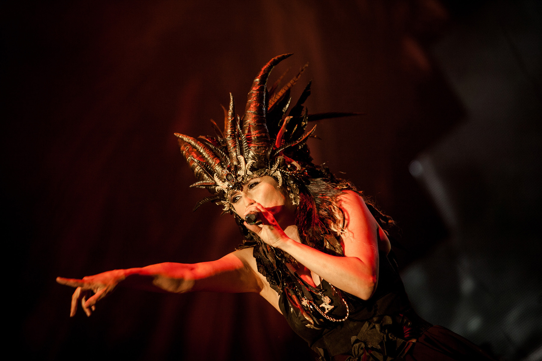Nach Abgang der Spielmänner war es an der Zeit für die kleine Sensation im Line-Up, was auch unschwer am immer dichter werdenden Gedränge vor der Bühne zu erkennen war: bevor stand der Auftritt von MARILYN MANSON, von US-amerikanischen Eltern immer mal wieder als leibhaftiger Antichrist verschrien und in einigen Städten mit Auftrittsverbot belegt. Man durfte also gespannt sein. Los ging´s mit „Angel With The Scabbed Wings“ in angemessen dreckigem Ton, gefolgt von „Disposable Teens“. „Personal Jesus“ wurde mit großer Geste angekündigt und bekam reichlich Applaus, im Publikum begann sich die eine oder andere kleine Moshpit zu entwickeln. Das Eurythmics-Cover „Sweet Dreams“ präsentierte MANSON dekorativ und stimmungsvoll auf Stelzen, „The Beautiful People“ bezog er galant aufs Publikum. Tendenziell zeigte sich das Enfant Terrible der Szene vergleichsweise brav, auch wenn der eine oder andere beherzte Tritt oder Schlag gegen das Mikrofon nicht fehlte und zur Zugabe bei „Antichrist Superstar“ dann doch noch die ganz große Pose mit Podest und abgewandelter Nazi-Symbolik zum Einsatz kam – man hat ja schließlich einen Ruf zu verlieren. Nach MANSONs Abgang leerte sich das Areal vor der MAIN STAGE rapide, da im benachbarten Hangar COMBICHRIST aufspielten und das Publikum in Massen dorthin strömte. Da sich beide Gigs überschnitten, war vor der MAIN STAGE zunächst noch relativ viel Platz, als WITHIN TEMPTATION die Bühne betraten und mit „Let Us Burn“ und „Paradise“ loslegten. Zu „Stand My Ground“ hatte sich die Menge dann jedoch wieder vergößert und die Band bekam ihr verdientes Publikum, das auch beim Lana Del Rey-Cover „Summertime Sadness“ eifrig mitklatschte. Sängerin Sharon den Adel warf sich in opulente Roben und überzeugte sowohl bei ruhigen als auch bei rockigen Klängen. Das reguläre Set schloss mit dem Klassiker „Mother Earth“, nach reichlichen Zugaberufen legte die Band jedoch noch mal mit vier Songs nach und der Abend endete schließlich, getreu dem Motto „Das Beste zum Schluss“, mit dem Hit „Ice Queen“.