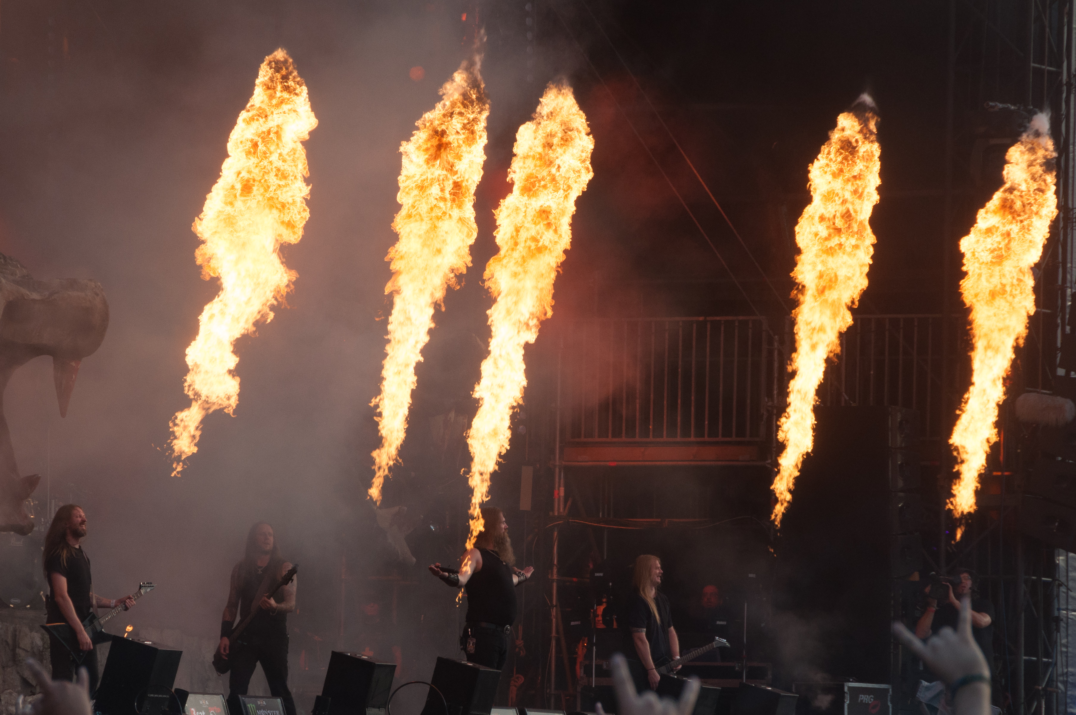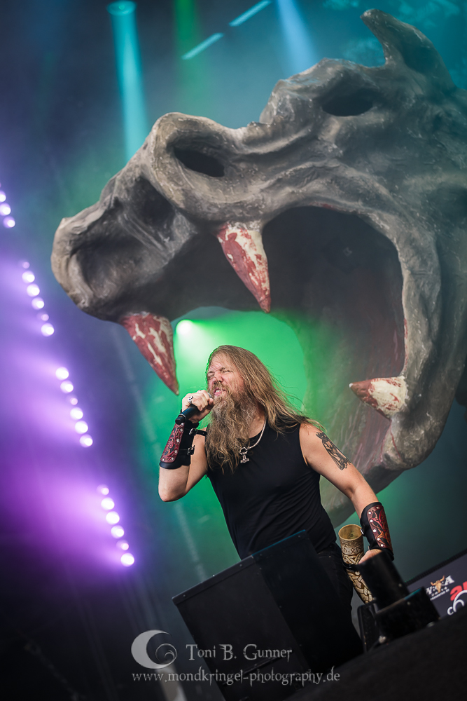 AMON AMARTH sind eine fuckin` Macht! Die Vikings erobern auch heute Abend Wacken. Leider ist es noch hell und die ansonsten fesselnde Licht Show kommt beim neuen „Father Of The Wolf“ sowie „Deceiver Of The Gods“ nicht voll zur Geltung. Dafür spucken die zwei riesengroßen Drachen-Schiffsköpfe immer wieder Feuer und Nebelschwaden in Richtung Wacken Crowd. Johann Hegg, heute gesanglich nicht bei jedem Song druckvoll wie zuletzt auf der Tour, hat die Fans trotzdem fest in der Hand. Thors Hammer kommt zu Beginn von „Twilight Of The Thundergods“ zum Einsatz und löst eine fette Explosion und Feuersäulen auf der Bühne aus. Die Crowdsurfer segeln einer nach dem anderen in den Heimathafen Fotopit, um den finalen „The Pursuit Of Vikings“ möglichst nahe beizuwohnen. Wenn 50.000 Leute im Groove beim Death Metal Mithüpfen und gröhlen „Odin“ ist das ein bisschen geil! (xhb)