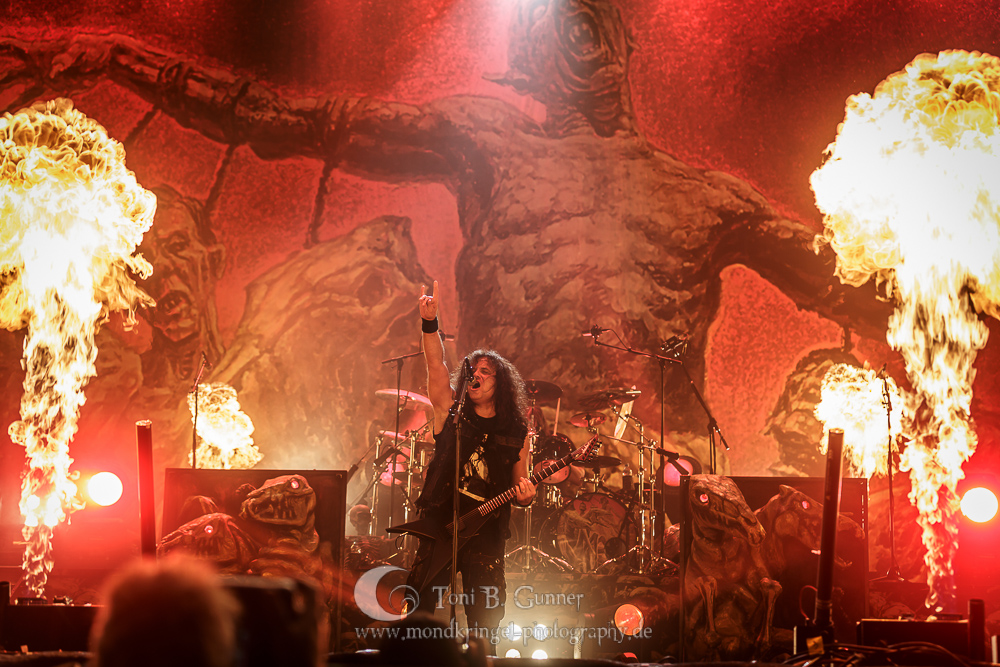 Um kurz vor zwölf mach ich mich nochmal auf die Socken, um mir KREATOR anzusehen. Die drei Tage Festival stecken aber gewaltig in den Knochen. Der Rücken schmerzt und die Füße sind ordentlich platt. Die Thrasher sind gewohnt gut und bieten ein Set, dass vor allem auf den letzten geilen Studioalben basiert. Mit „Phantom Antichrist“ böllern sie los dicht gefolgt vom treibend groovigen „From Flood Into Fire“. Feuerfontänen, intensives Licht und ein fetter Sound untermauern Klassiker wie „Tormentor“ und „Flag Of Hate“ sowie natürlich „Pleasure To Kill. Milles Ansage, das Politik und Religionen die Menschen auseinander treibt und Musik es schafft sie zu vereinen ist nicht aus der Luft gegriffen und das darauf folgende „Enemy Of God“ findet entsprechenden Zuspruch. (rs)