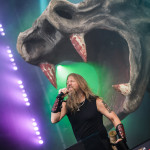 Und Abfahrt – ARCH ENEMY sind da und brettern mit dem neuem „War Eternal“ erst mal ordentlich los. Eventuell vorhandene Bedenken, Alissa White-Gluz (ex The Agonist) am Mikro könne die Lücke von Angela Gossow live nicht füllen, lösen sich schnell in Luft auf. Denn auch ältere Songs wie „ My Apocalypse“ oder „Dead Eyes See No Future“ funktionieren bestens. Ms. White-Gluz macht ihren Job wirklich gut, hat auch live eine kraftvolle Stimme und agiert äußerst natürlich und sympathisch. Und da die noch nicht mal 30 Jahre junge Lady mit ihren blauen Haaren und in ihrem Haut engem verwaschenem Top auch optisch eine Augenweide ist, hat sie schnell die Herzen der Fans erobert. Dann wird einfach nur noch gemoscht und gefeiert. „No Gods, No Masters“, „We Will Rise” und natürlich “ Nemesis” mit dem geilem Outro “ Fields Of Desolation“ machen Bock auf die nächste Tour im Winter…zusammen mit Kreator, Sodom und Vader! (xhb)